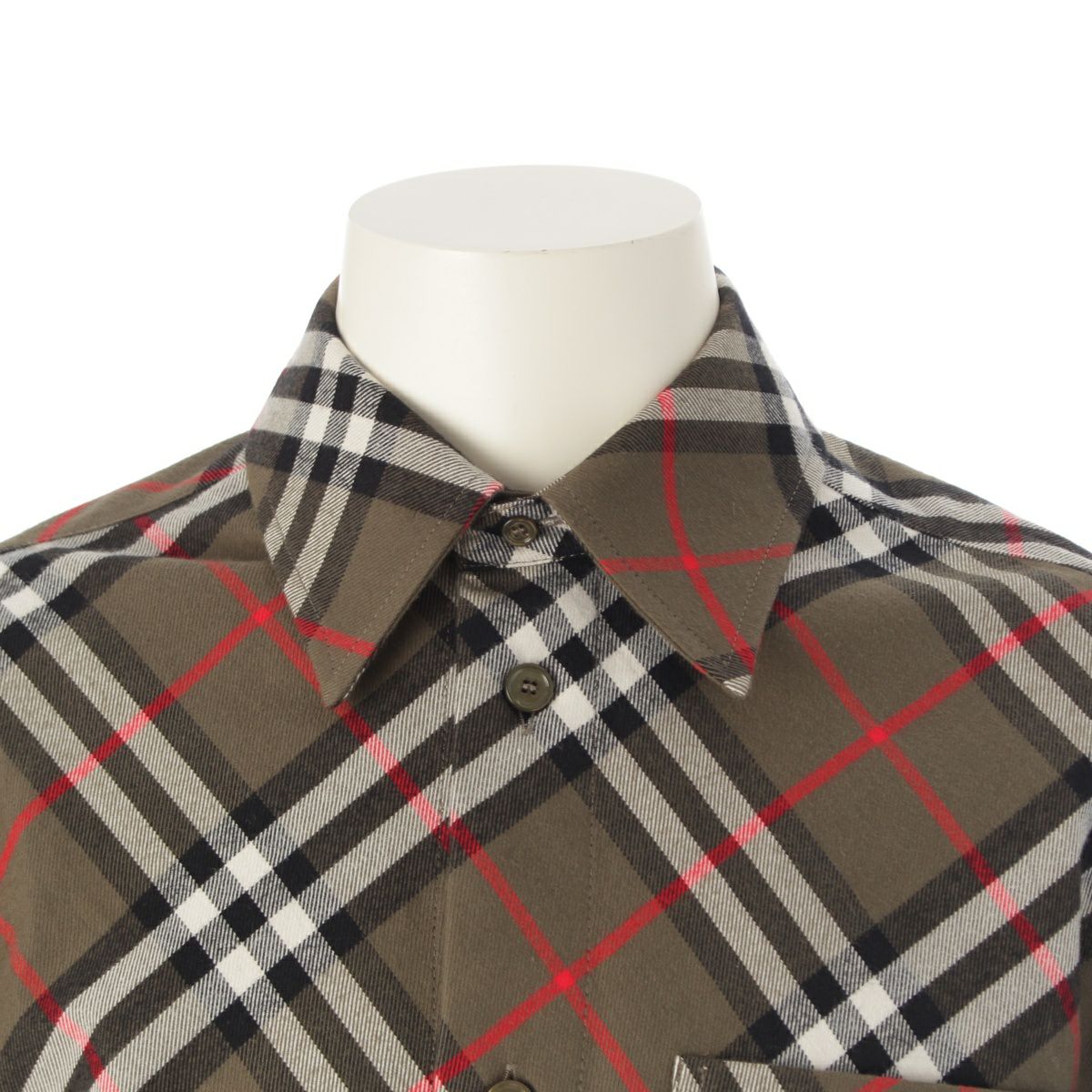 バーバリー ヴィンテージ コットン ノバチェック ボタンダウン 長袖シャツ 胸ポケット トップス カーキ L