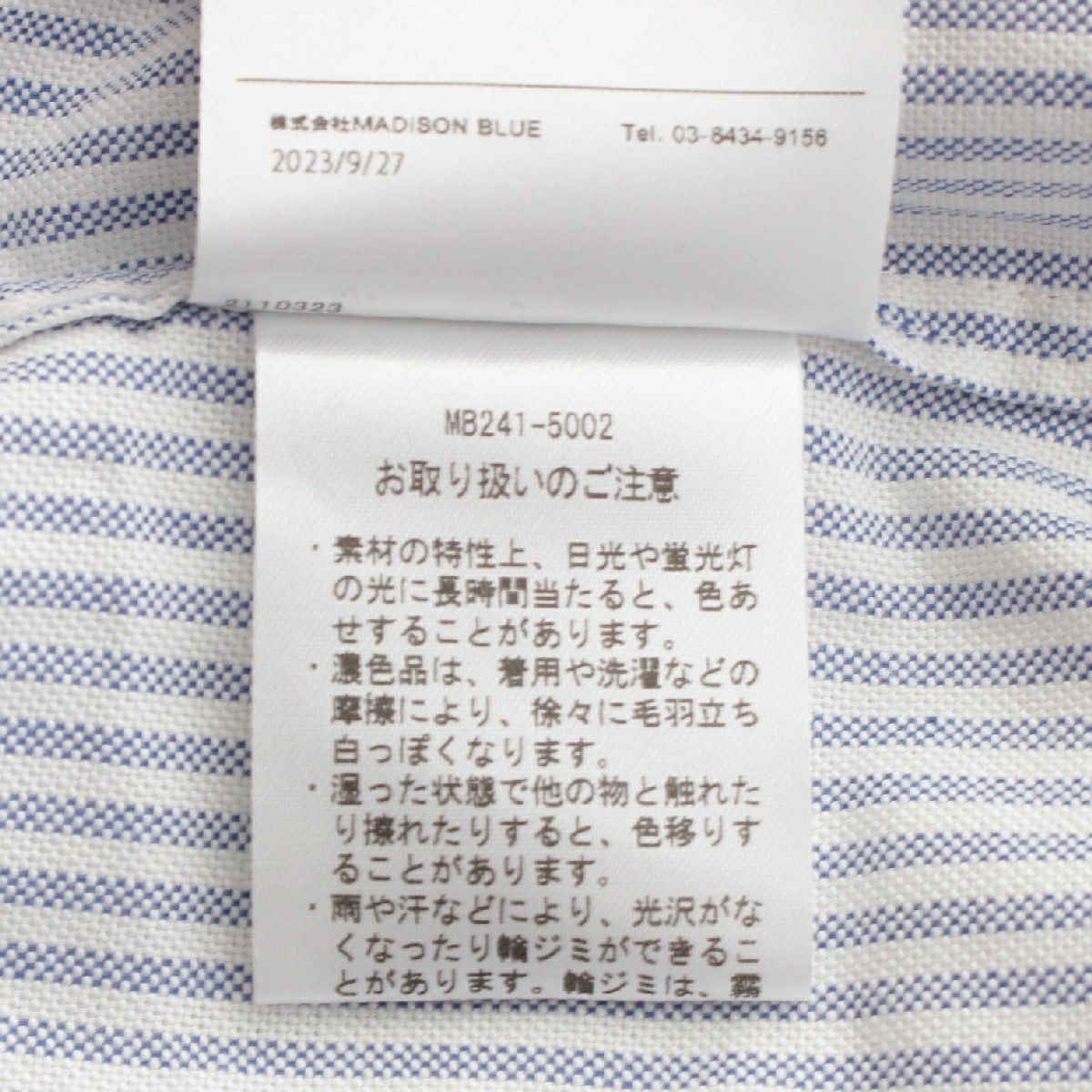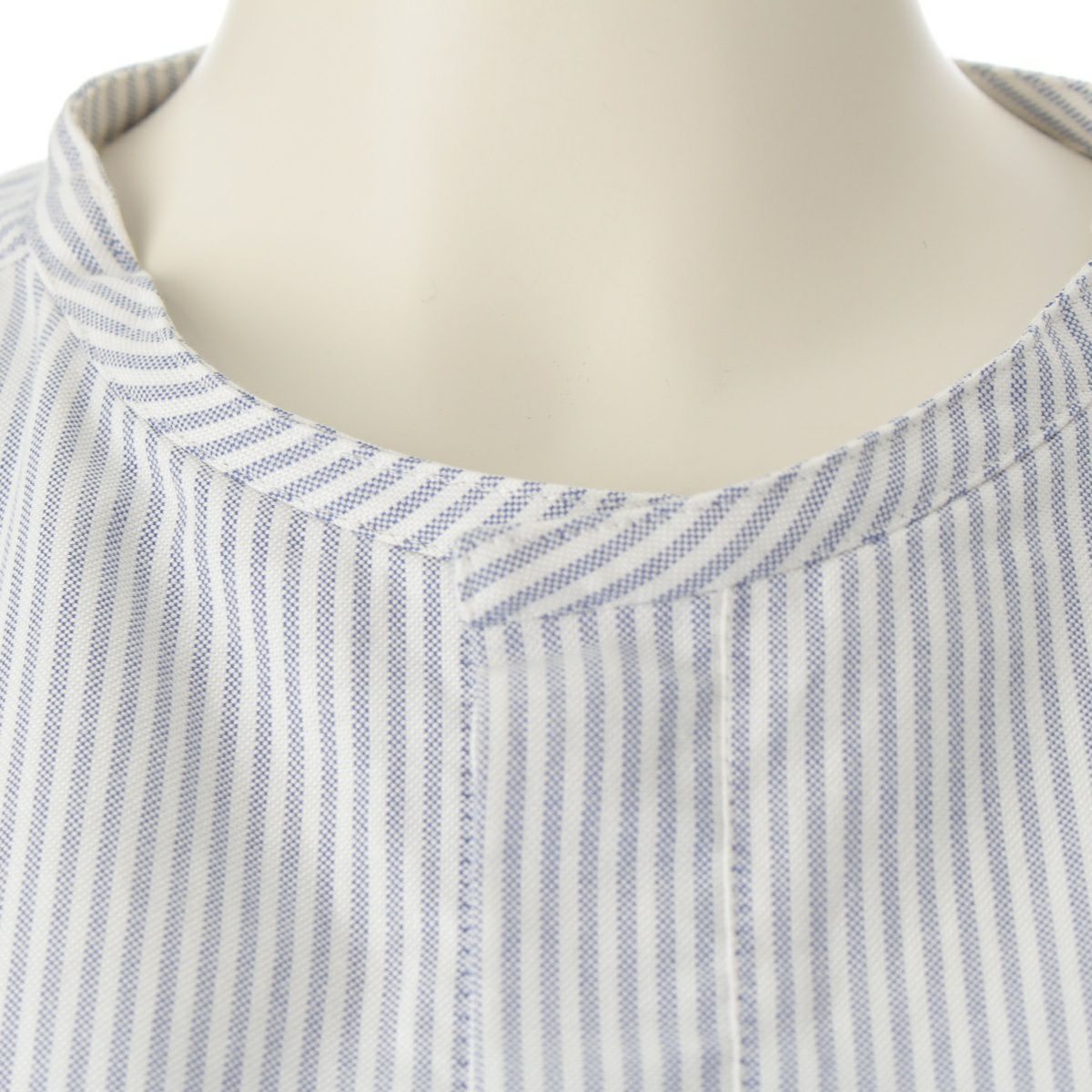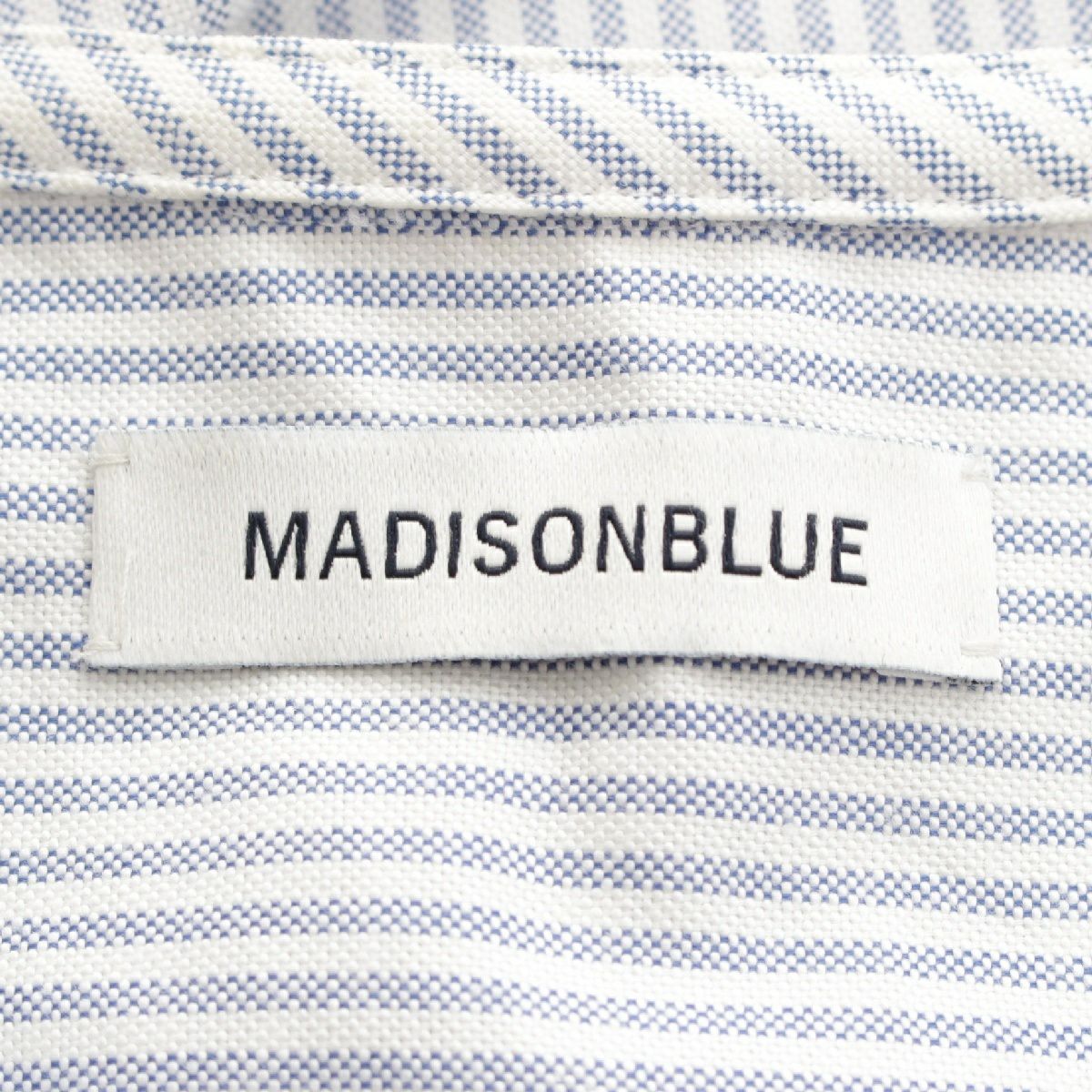 マディソンブルー 24SS コットン ノーカラー オックスフォード ストライプ ロングシャツ ロゴ刺繍 長袖シャツ トップス MB241-5002 ブルー 02(M)