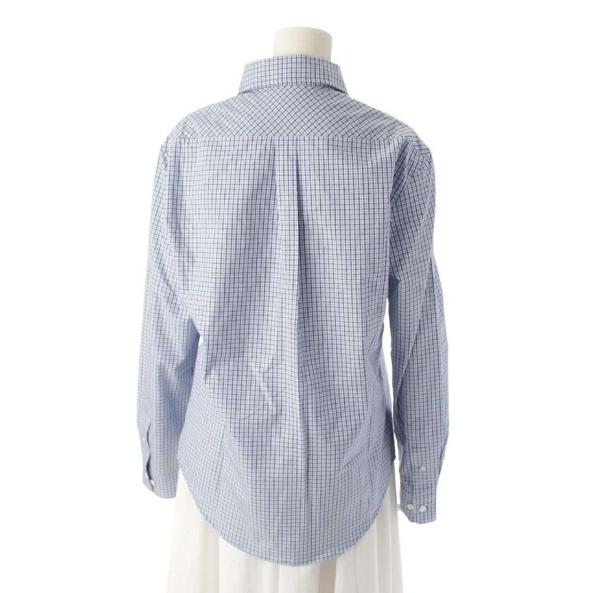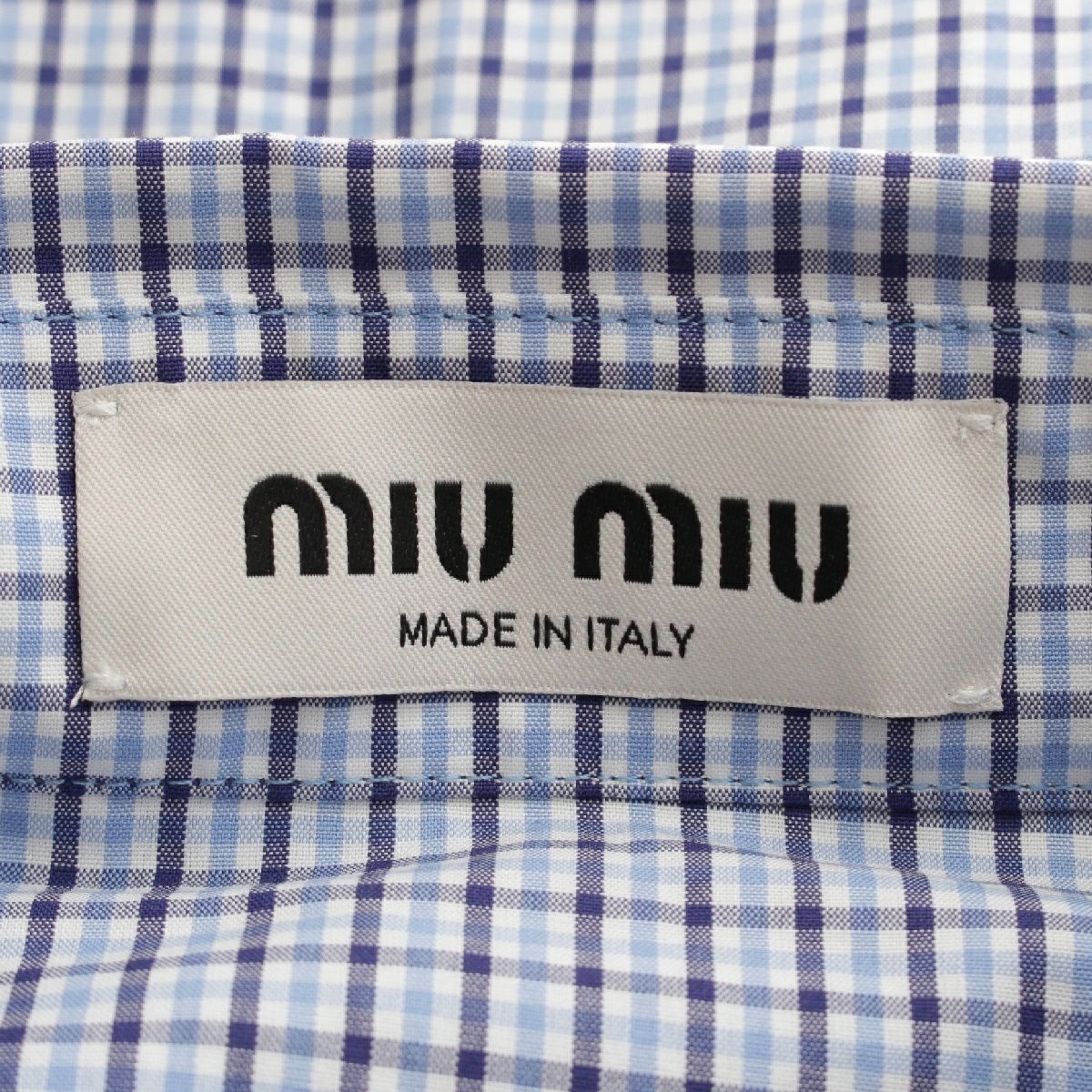 ミュウミュウ 25SS コットン ロゴワッペン ポプリン チェック 長袖シャツ トップス MK1920 ホワイト サファイアブルー 40