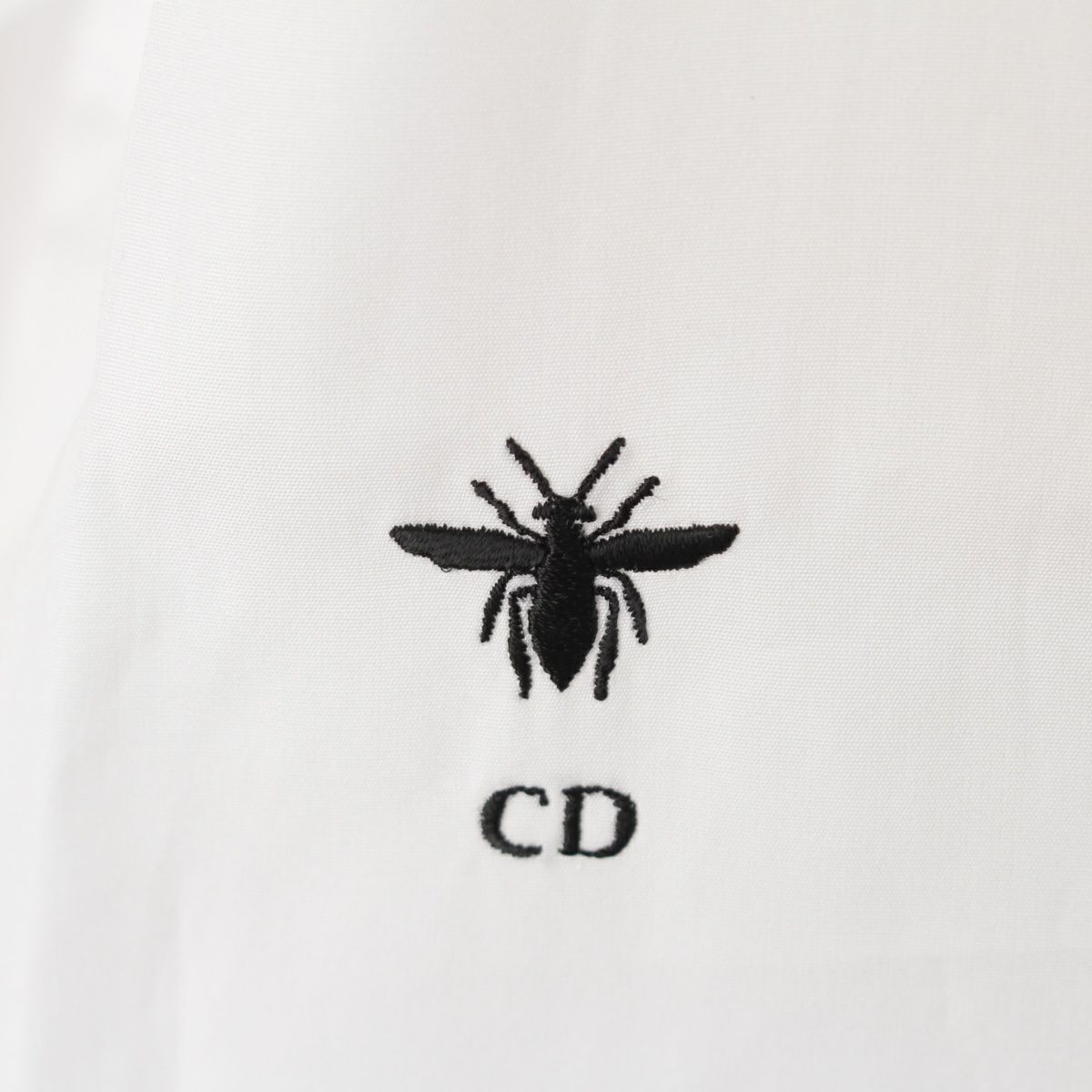 クリスチャンディオール 21AW コットン ビー刺繍 ダブルカフス 半袖シャツ トップス 151B68A3356 ホワイト 36