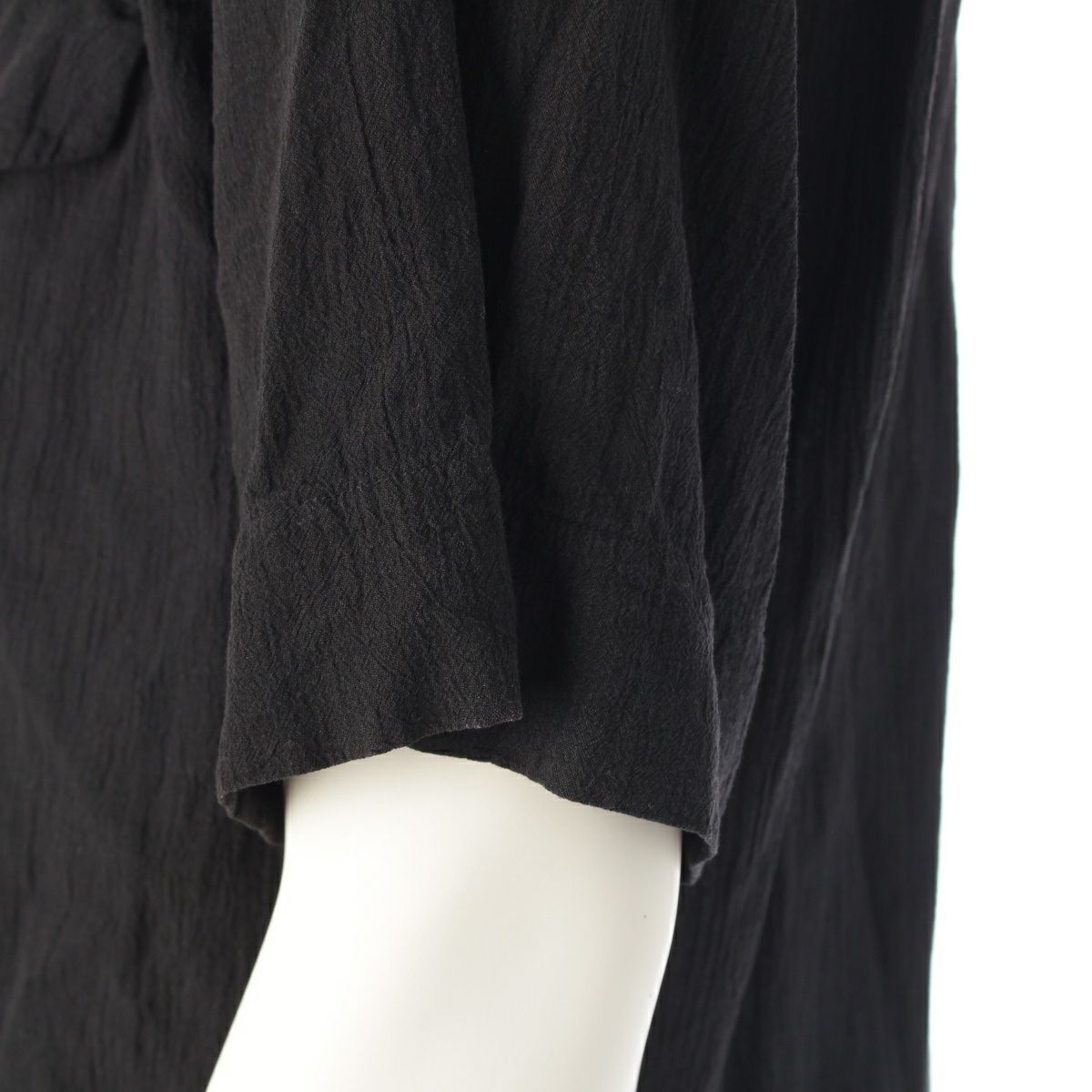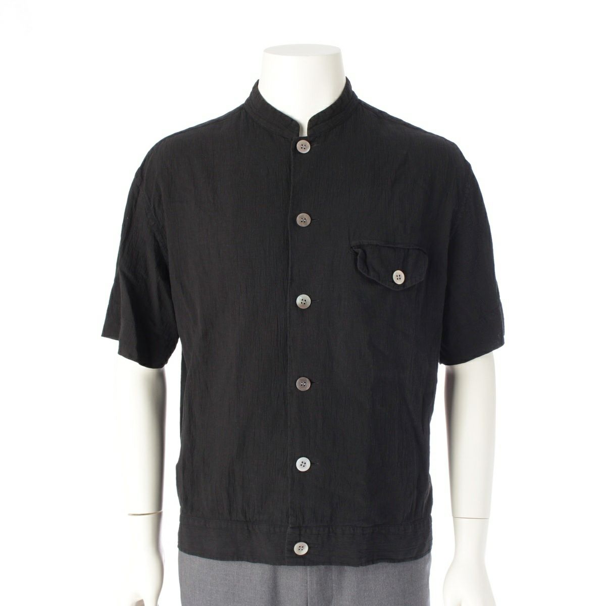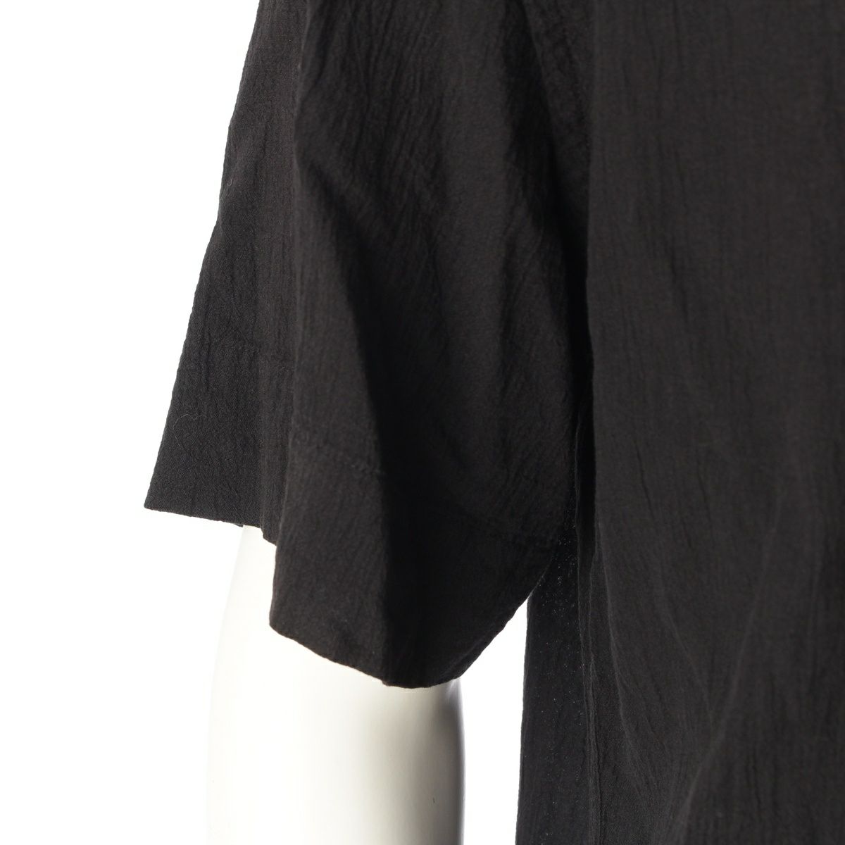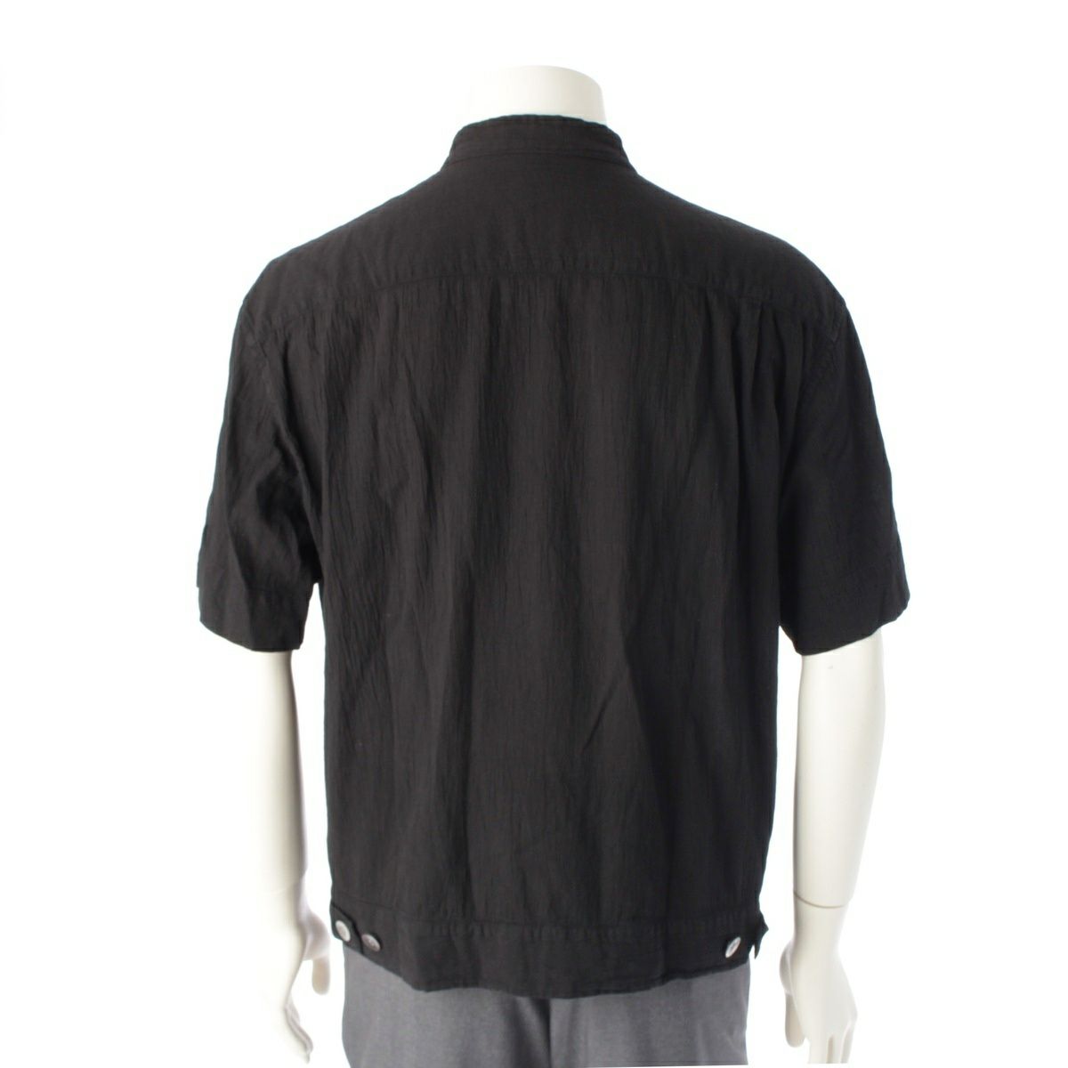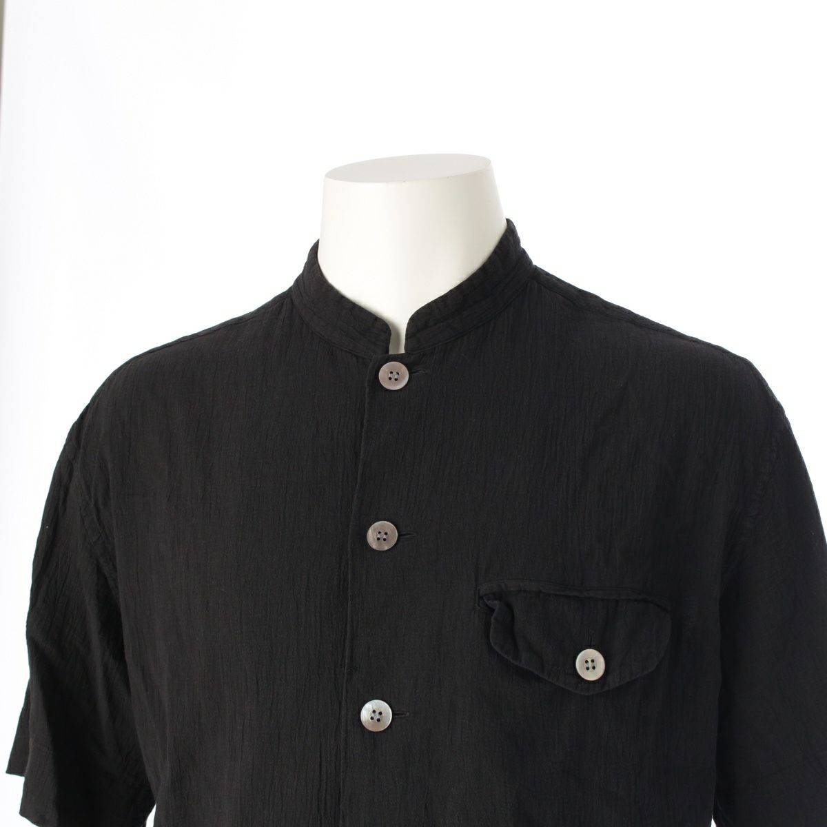 イッセイミヤケ メン 90s コットン シワ加工 製品染め スタンドカラー 半袖シャツ トップス ブラック M