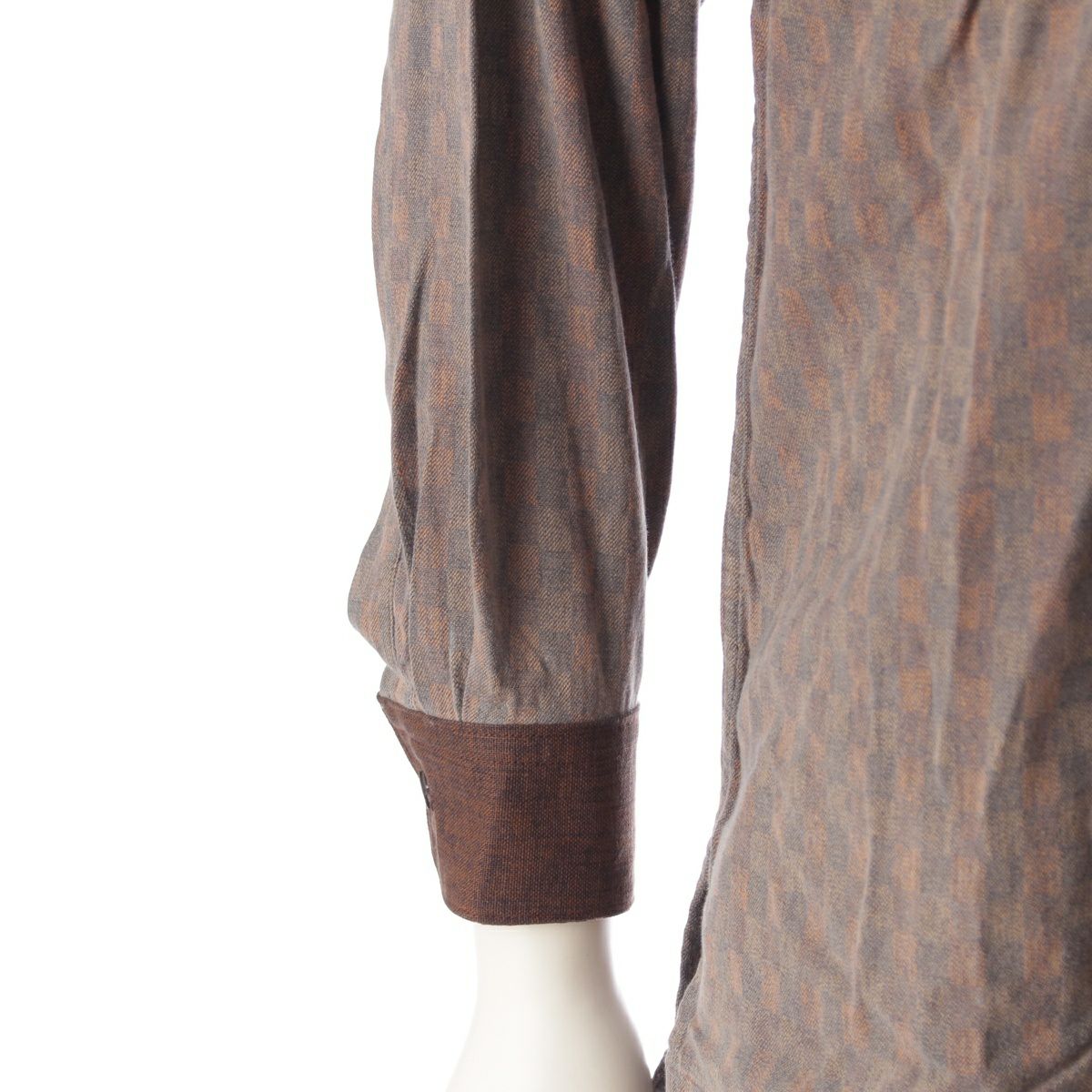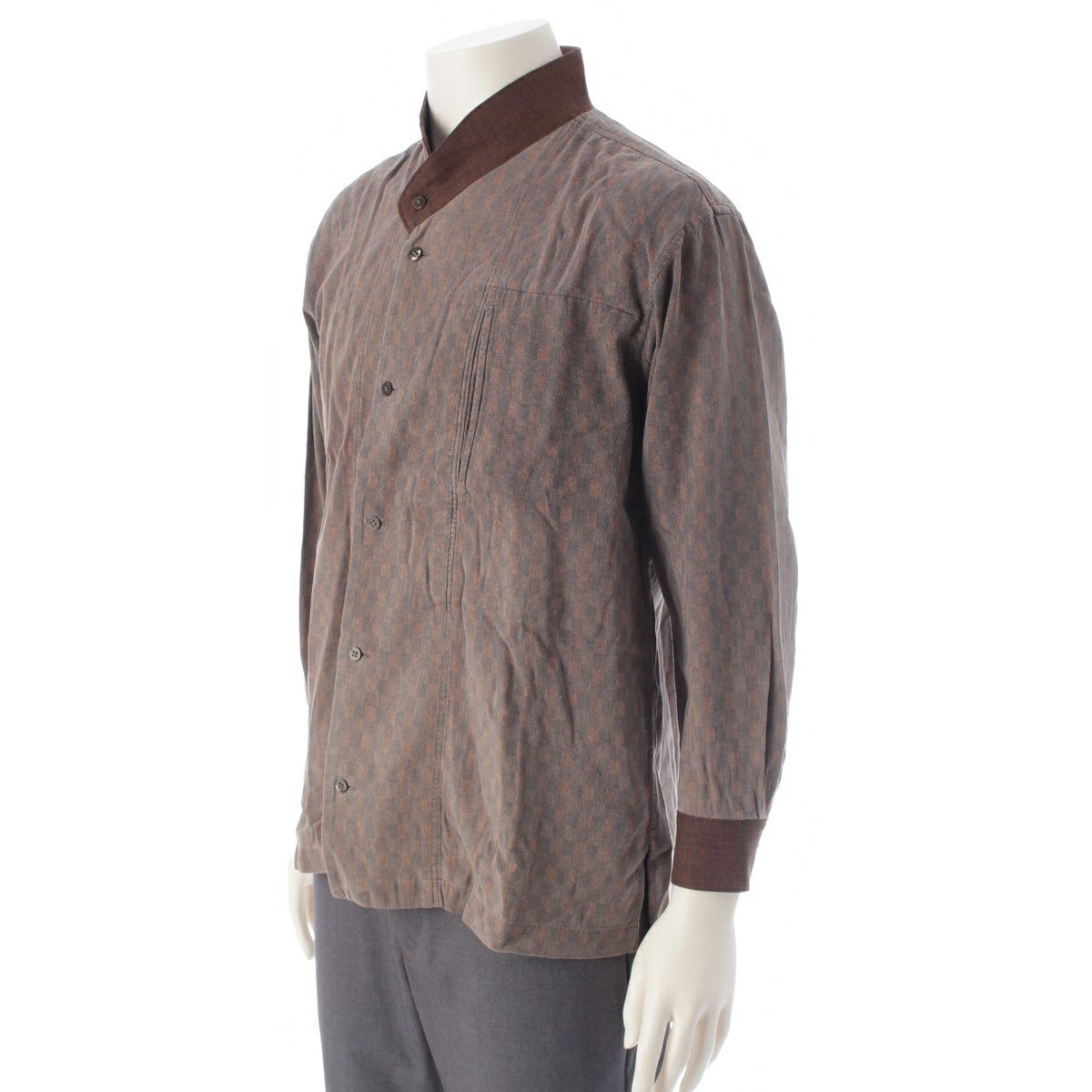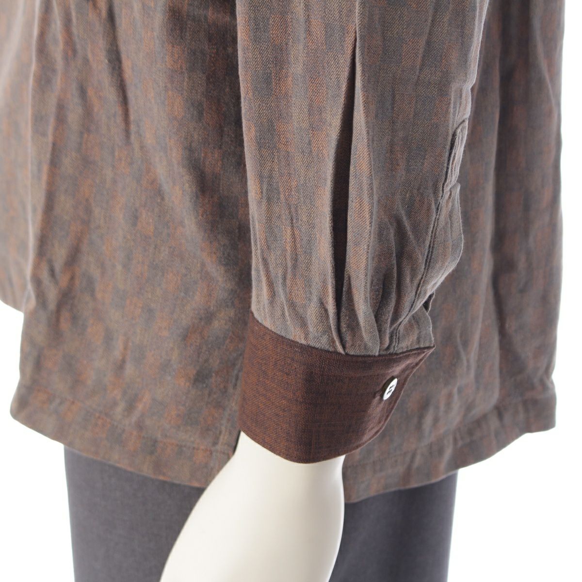 イッセイミヤケ 80s IM 着物襟 市松模様 長袖シャツ ブラウン S