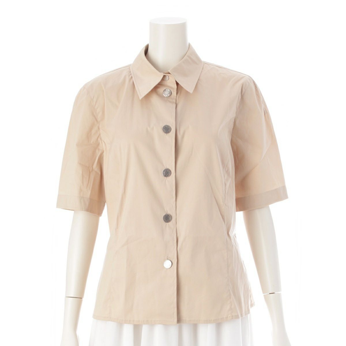 エルメス コットン ヴィンテージ セリエボタン ビッグボタンデザイン 半袖シャツ トップス ベージュ オフホワイト系 38