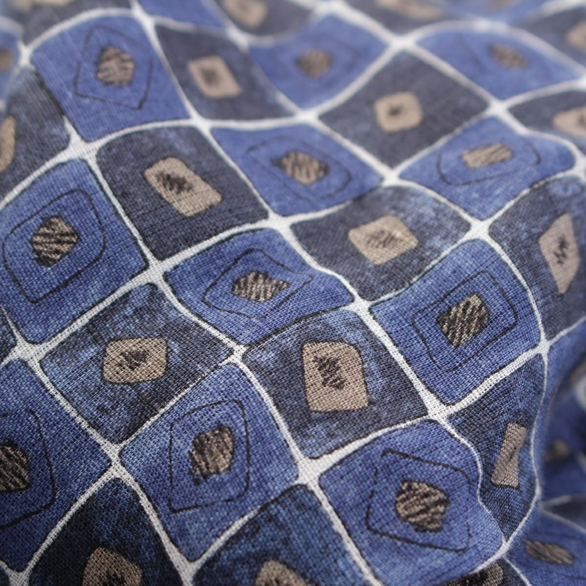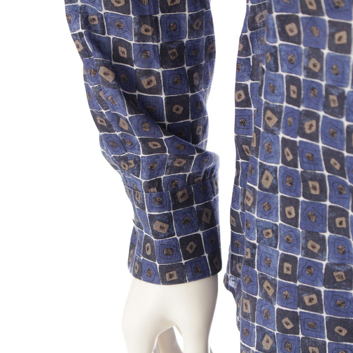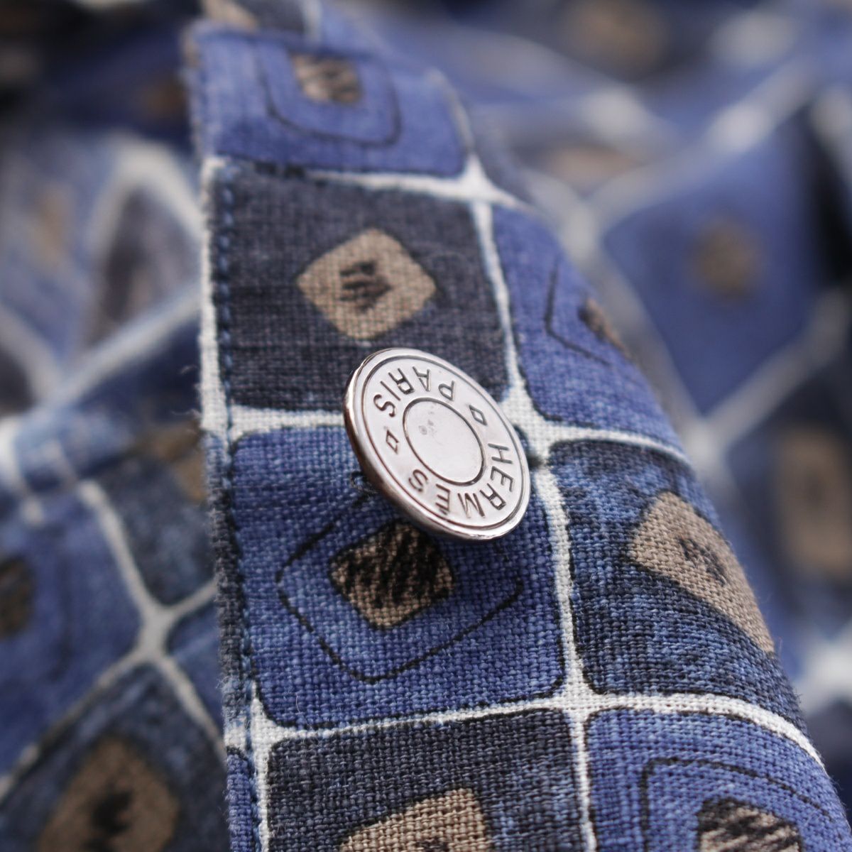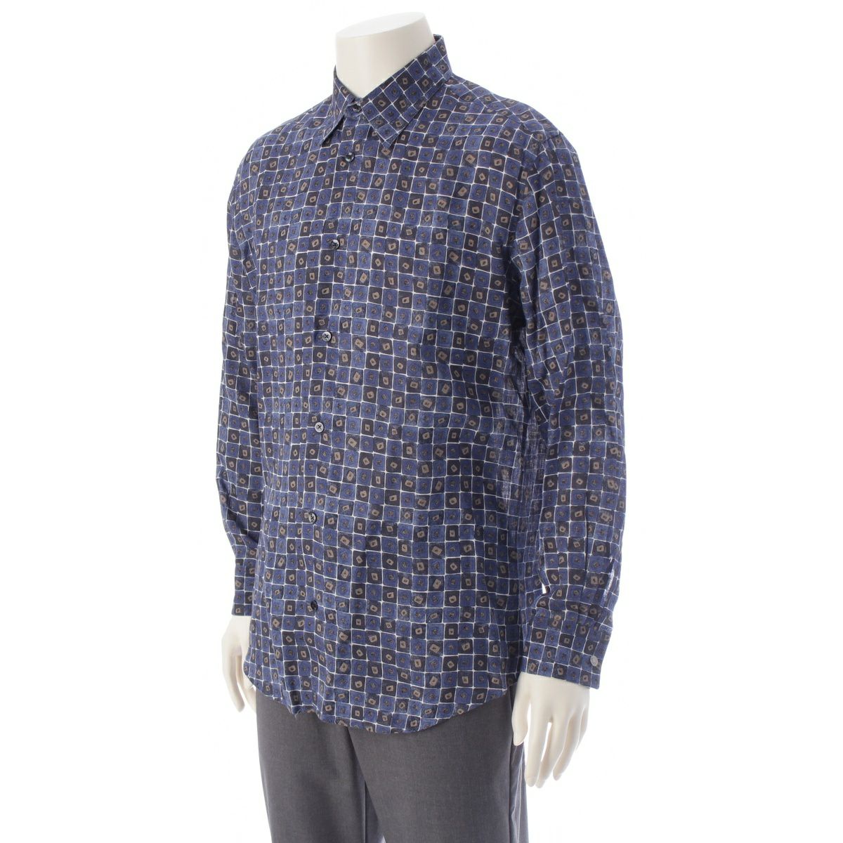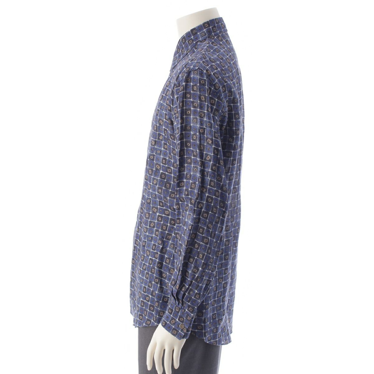 エルメス リネン セリエボタン チェック 総柄 長袖シャツ ブルー