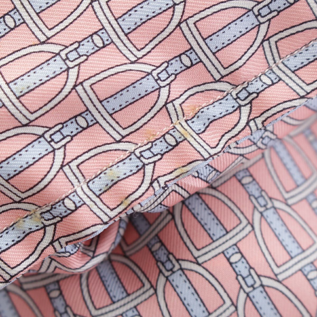 グッチ シルク ベルト柄 ロゴボタン 長袖シャツ ピンク×ブルー 40 15 3/4
