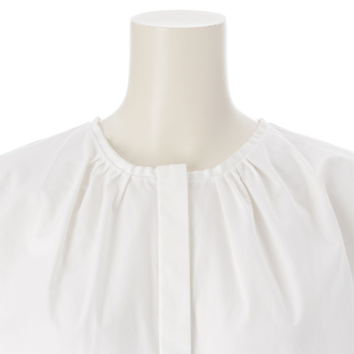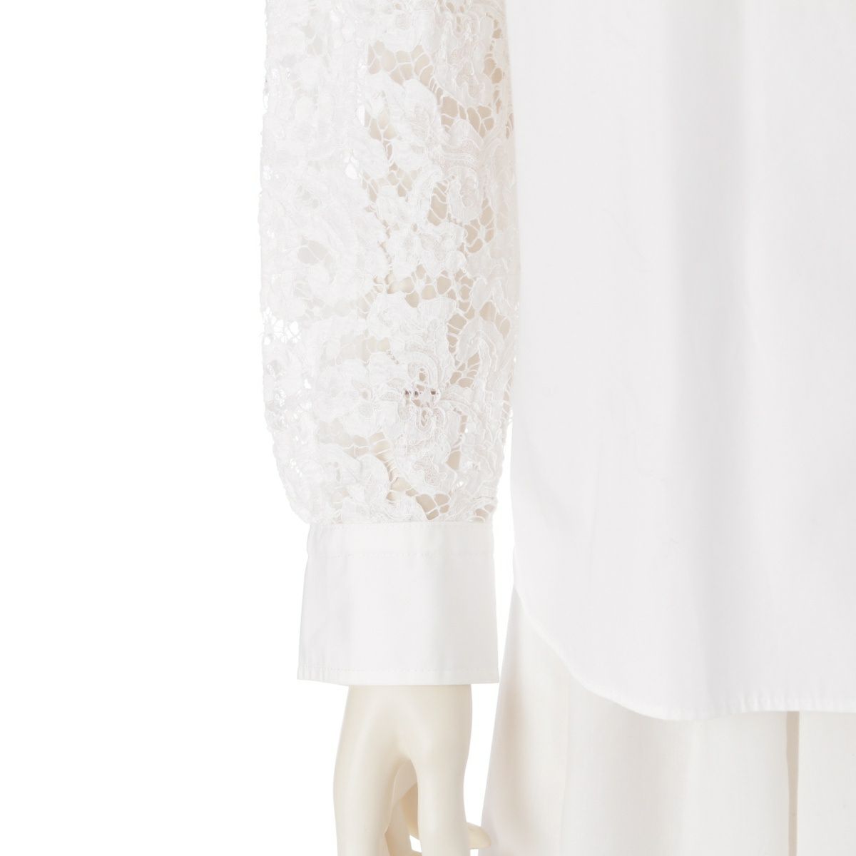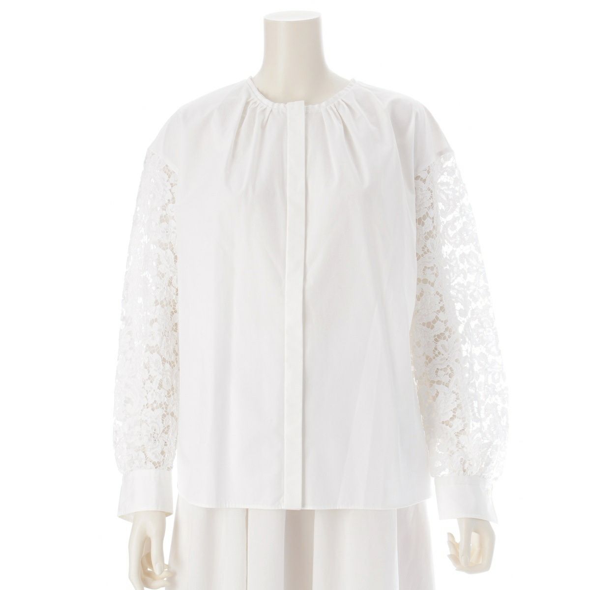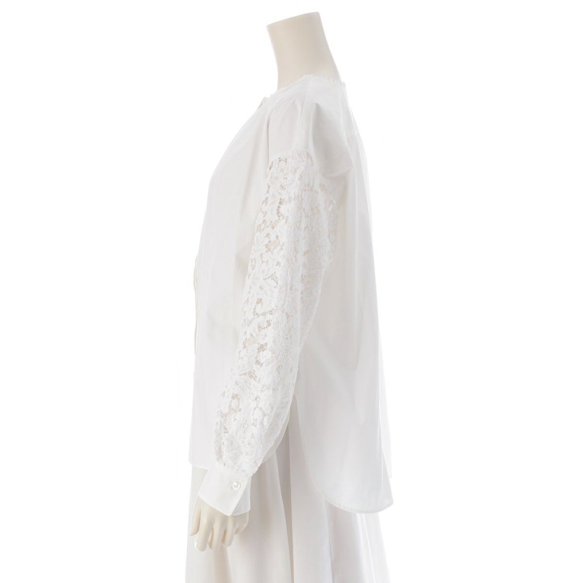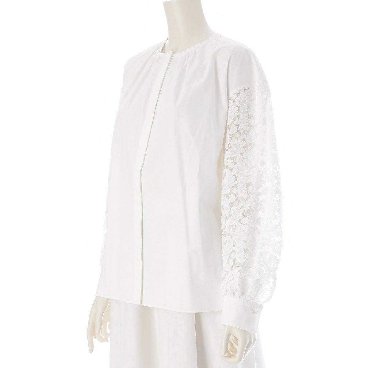 ドゥロワー コットン レーヨン シルク ナイロン 袖レース切り替え ノーカラー 比翼 ブラウス トップス 6521-299-1245 ホワイト 36