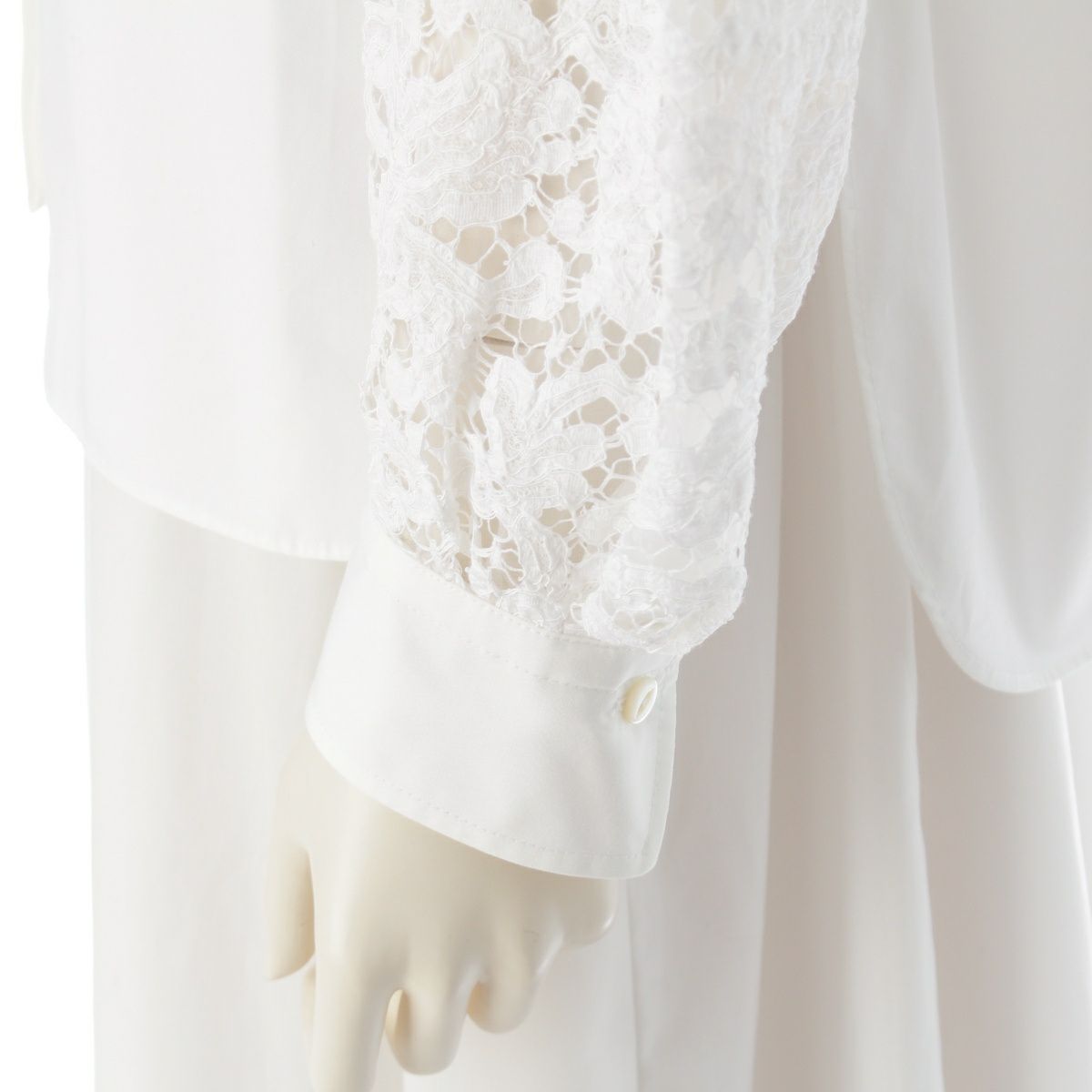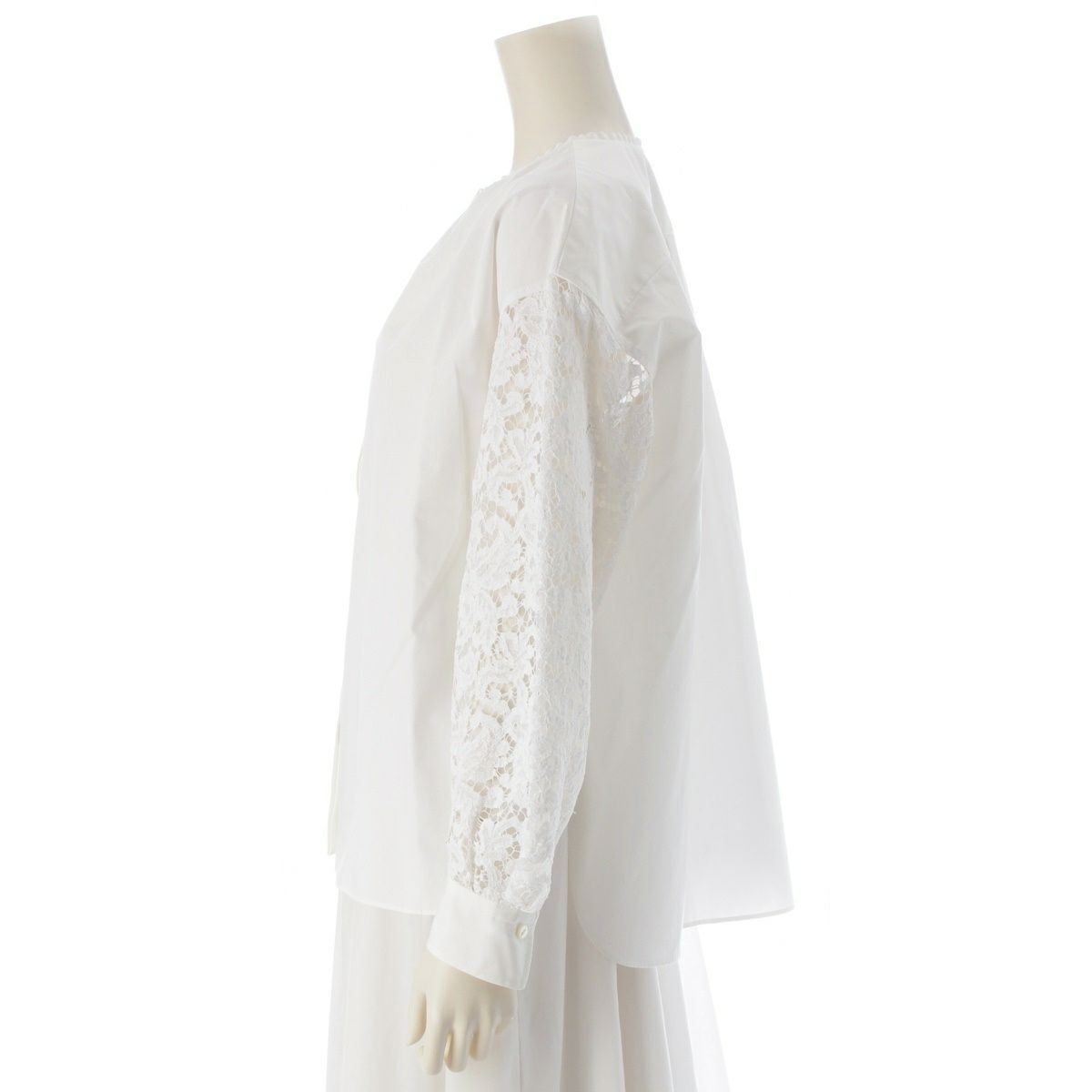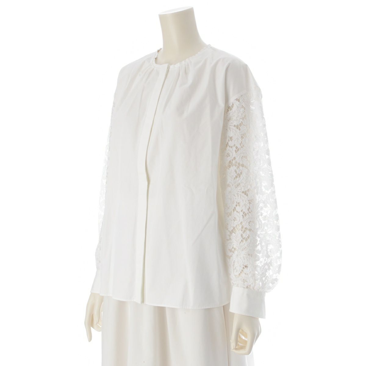 ドゥロワー コットン 袖レース切り替え 比翼 ノーカラー ブラウス トップス 6521-299-1245 ホワイト 36