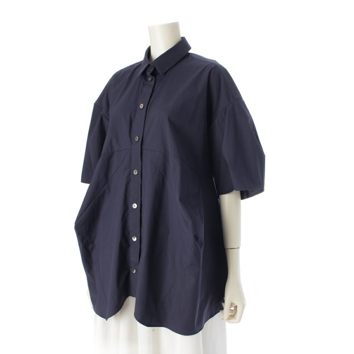 エンフォルド 25SS HALF SLEEVES SHIRT コットン 袖サイドボタン 半袖シャツ 300IS530-1531 ネイビー 38