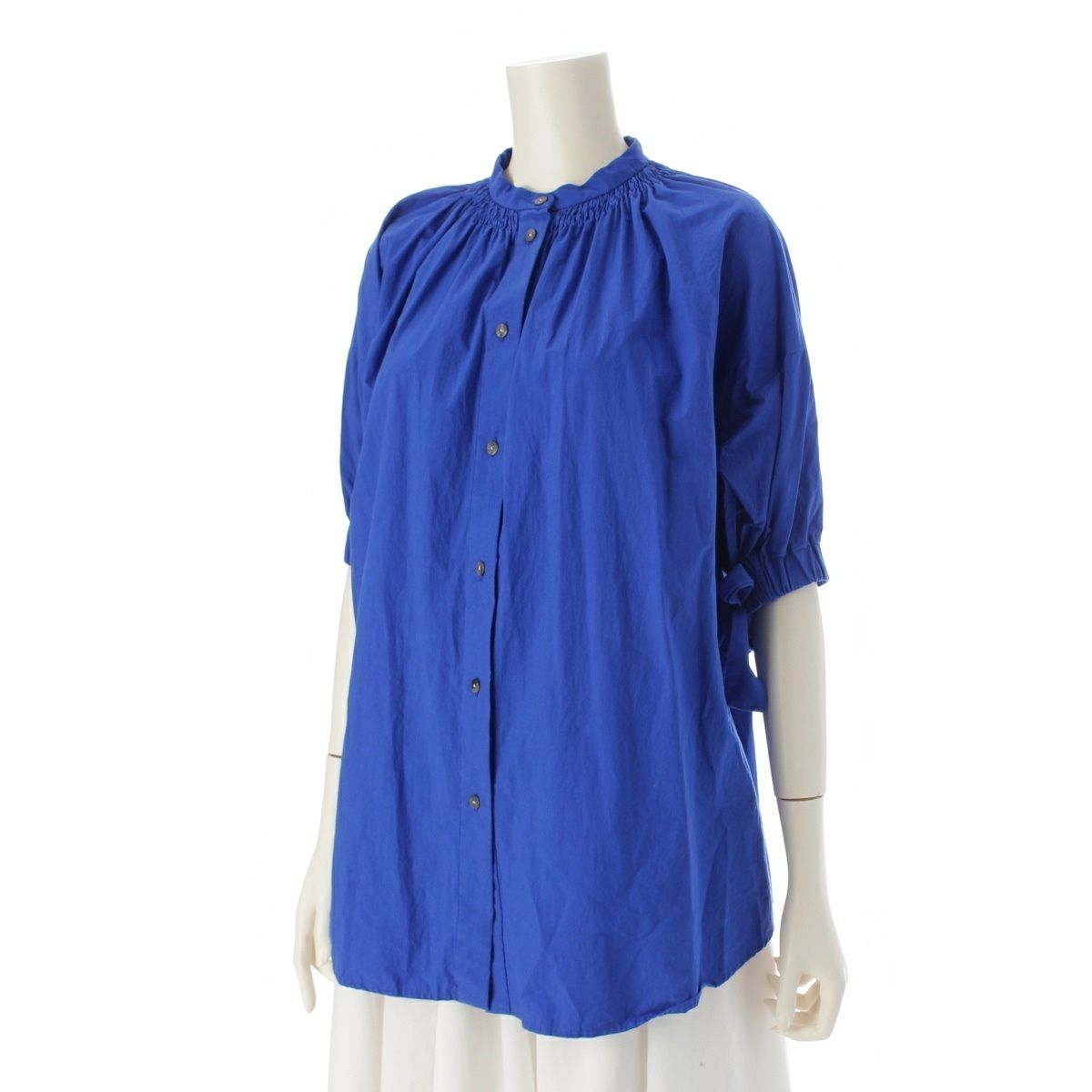 エンフォルド 23SS コットン サイドスリット スタンドカラー シャツ ブラウス トップス 300GS230-2360 ブルー 38