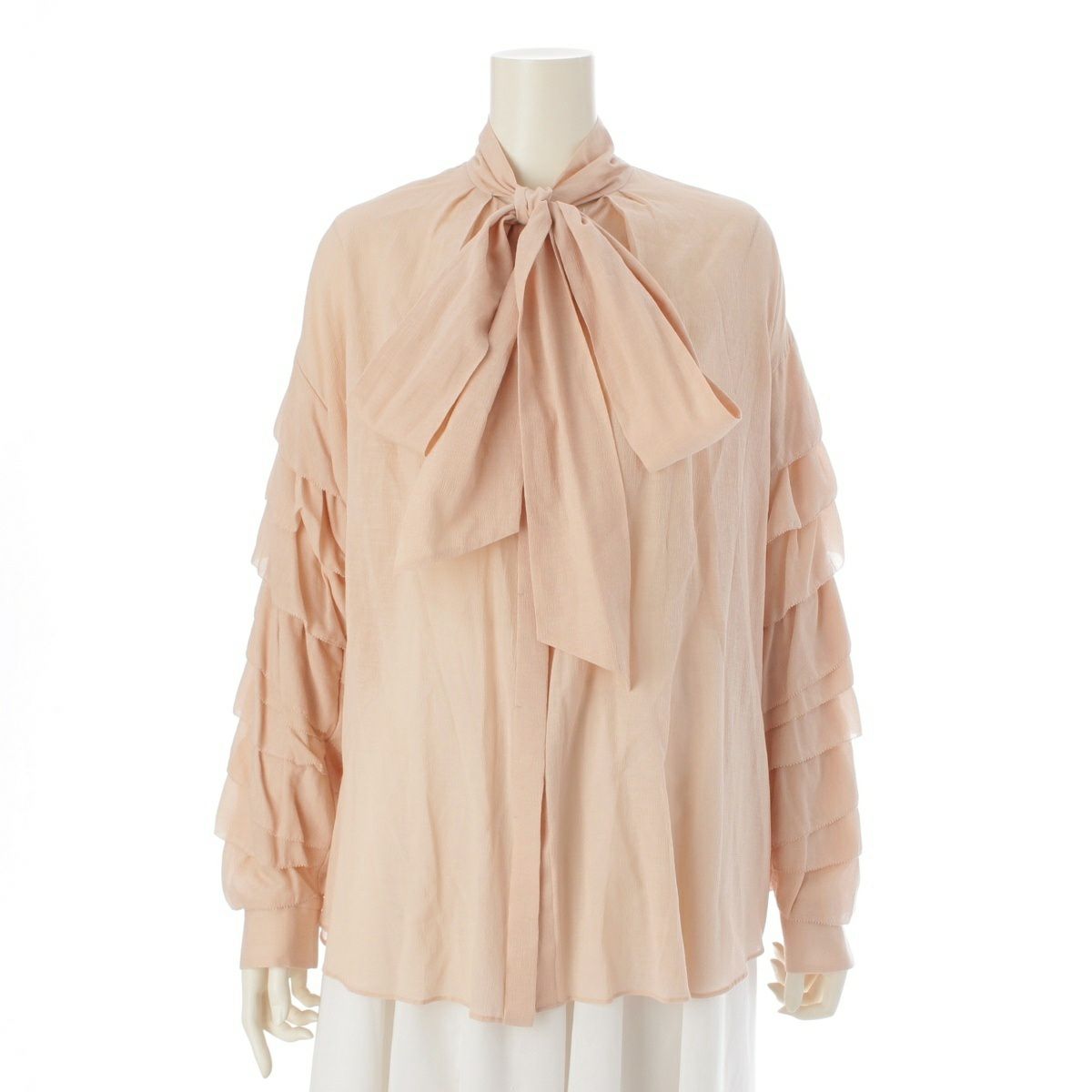ドゥロワー 23SS コットンシルク RESORT2 リボン ボウタイ シアー 長袖 ブラウス トップス 6521-299-1063 サーモンピンク