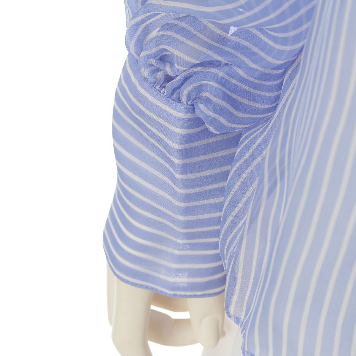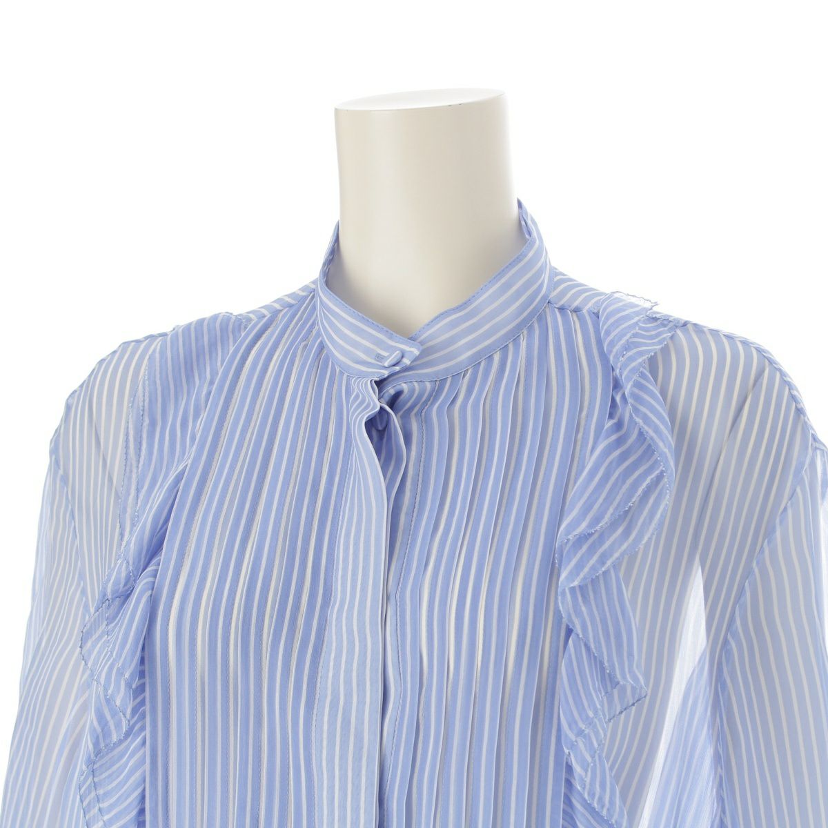 ヴァレンティノ 23AW シルク ストライプ ボタンアップ シアー フリル ブラウス ノーカラー シャツ トップス 3B3AB57683E ホワイト ブルー 38