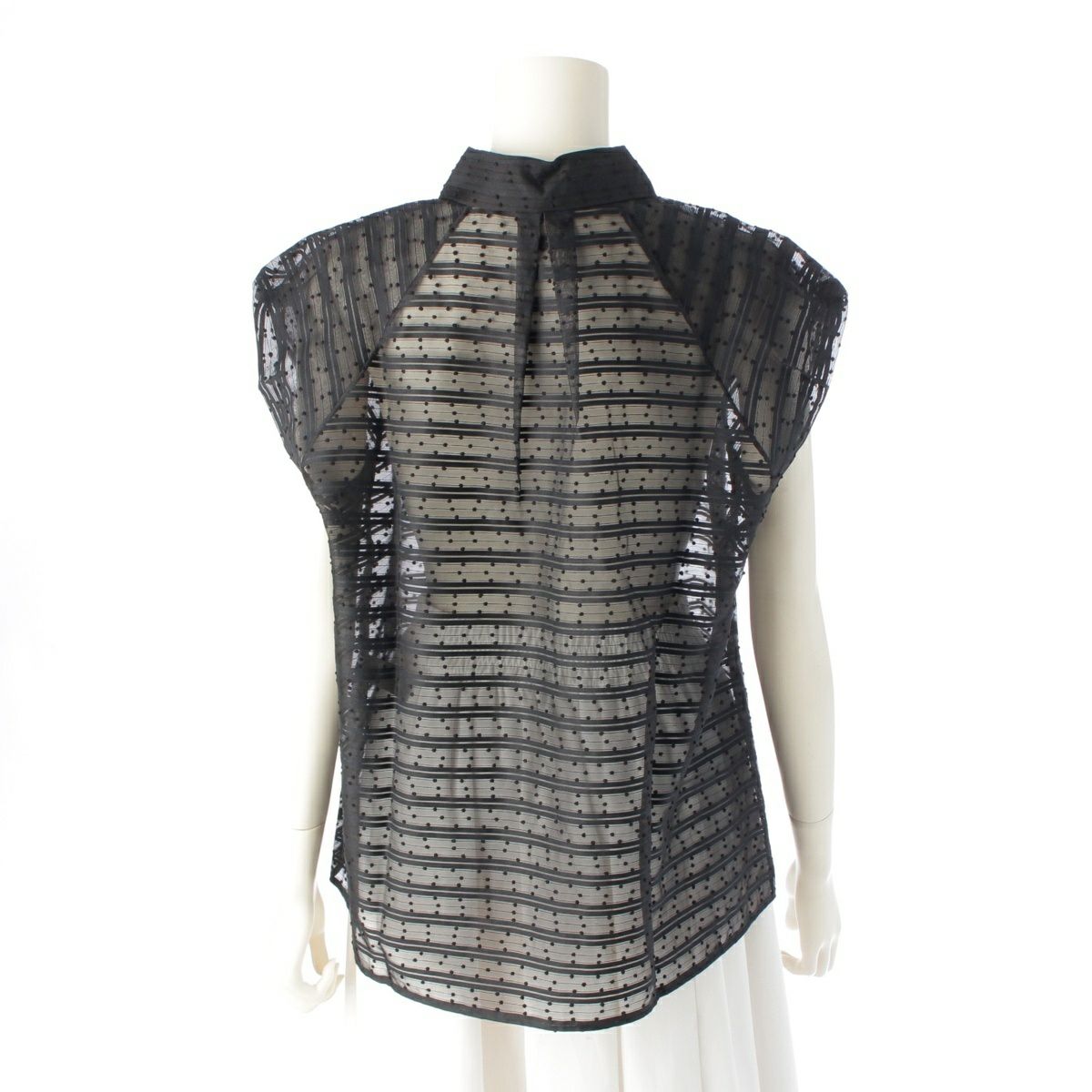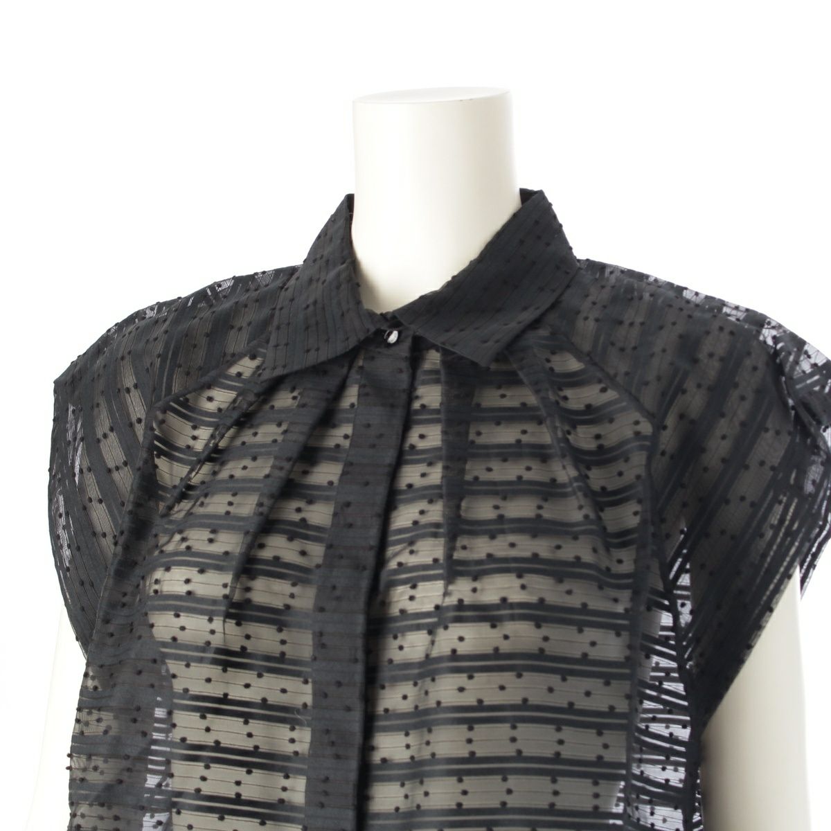 ドゥロワー 24SS コットン ナイロン ボーダージャガード ドットノースリー ブラウス トップス 6521-299-1152 ブラック 36