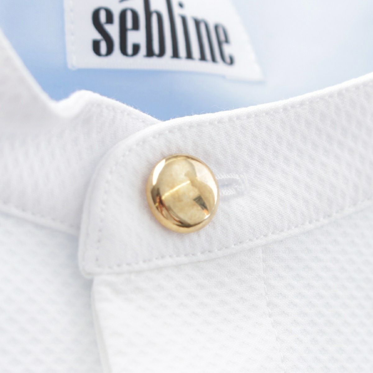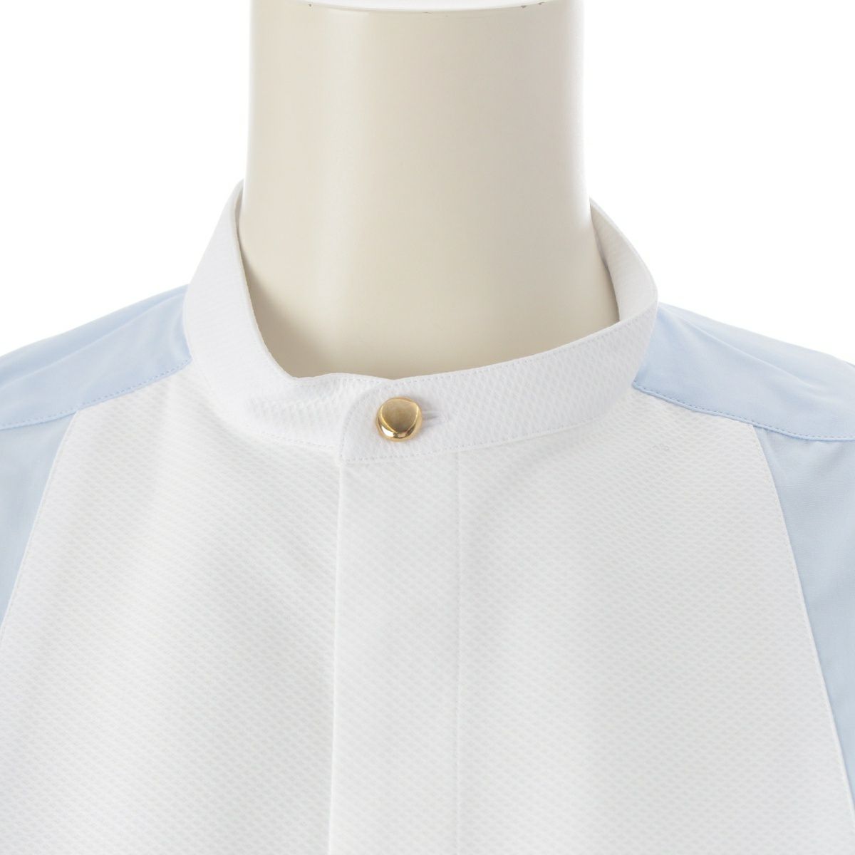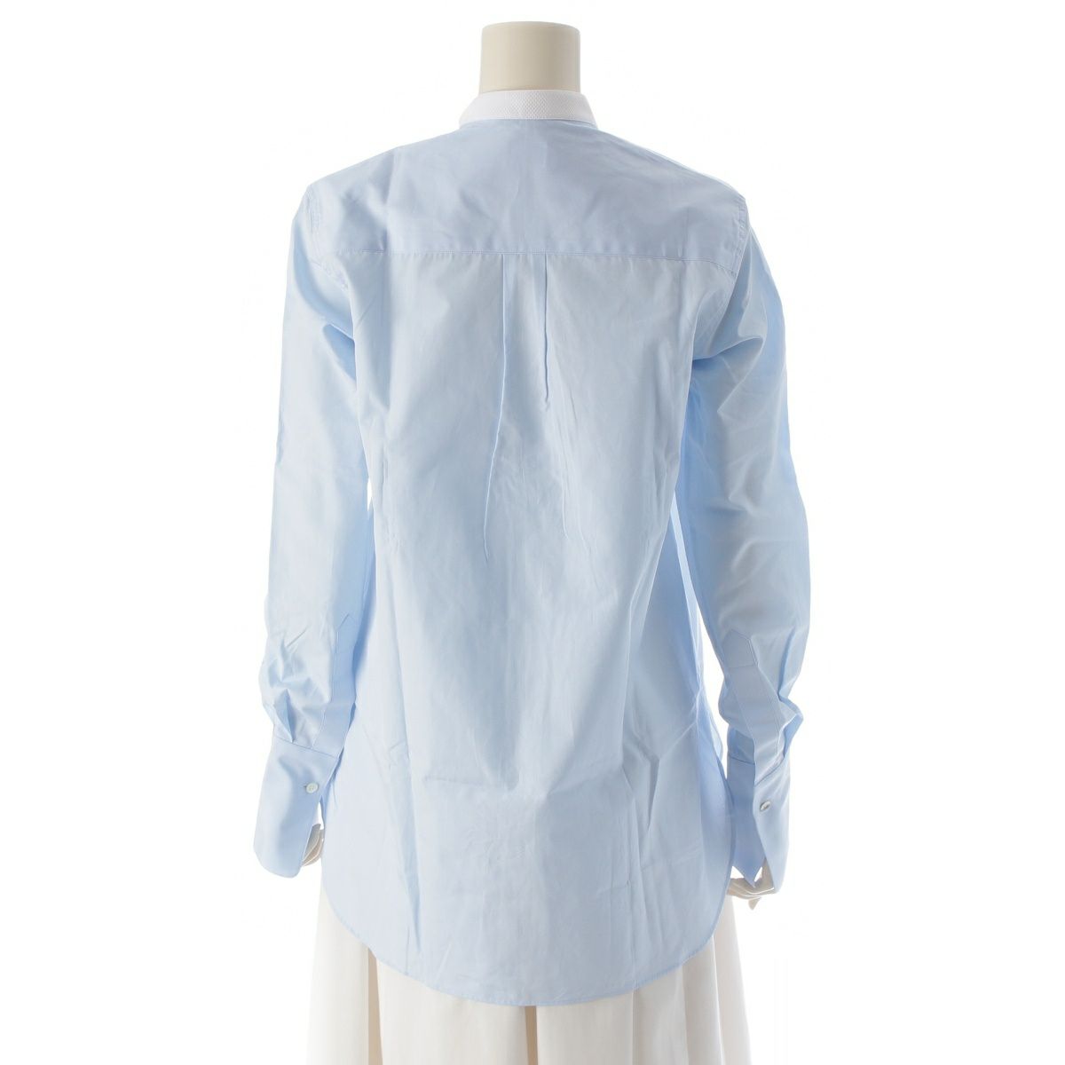 セブリン SEBLINE コットン 金ボタン ペインター ノーカラー シャツ ブラウス トップス CH003FV1OVR ホワイト サックスブルー S
