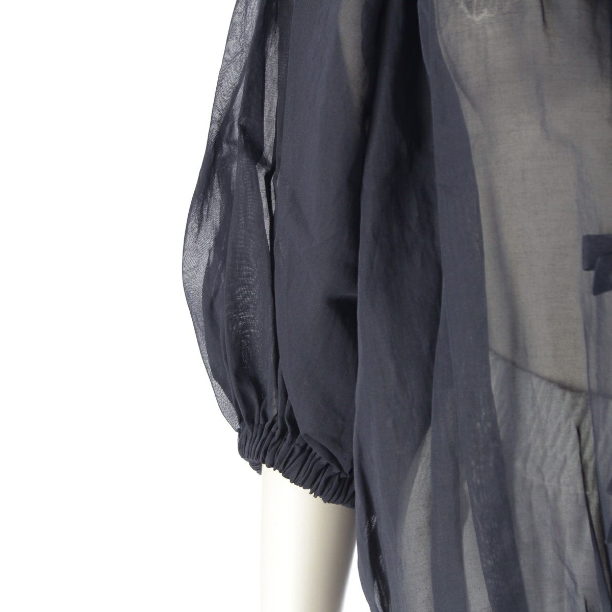 ティーマットマサキパリ コットン ドゥロワー別注 フロントリボン バルーンスリーブ シアー ブラウス トップス ネイビー 1