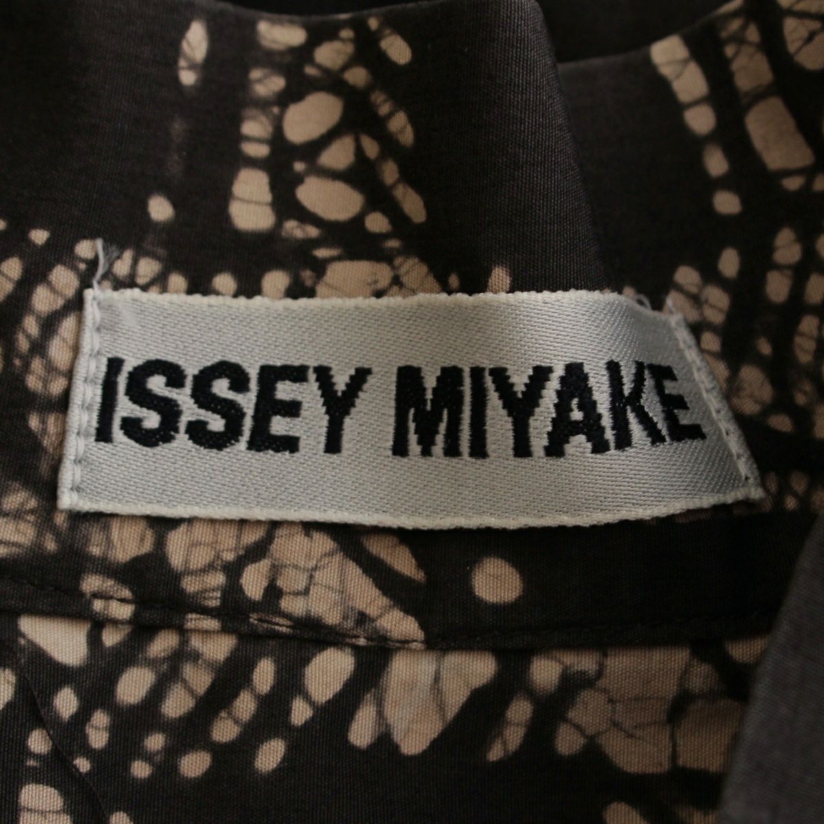 イッセイミヤケ コットン スタンドカラー 総柄 長袖シャツ JG14660 ブラウン M
