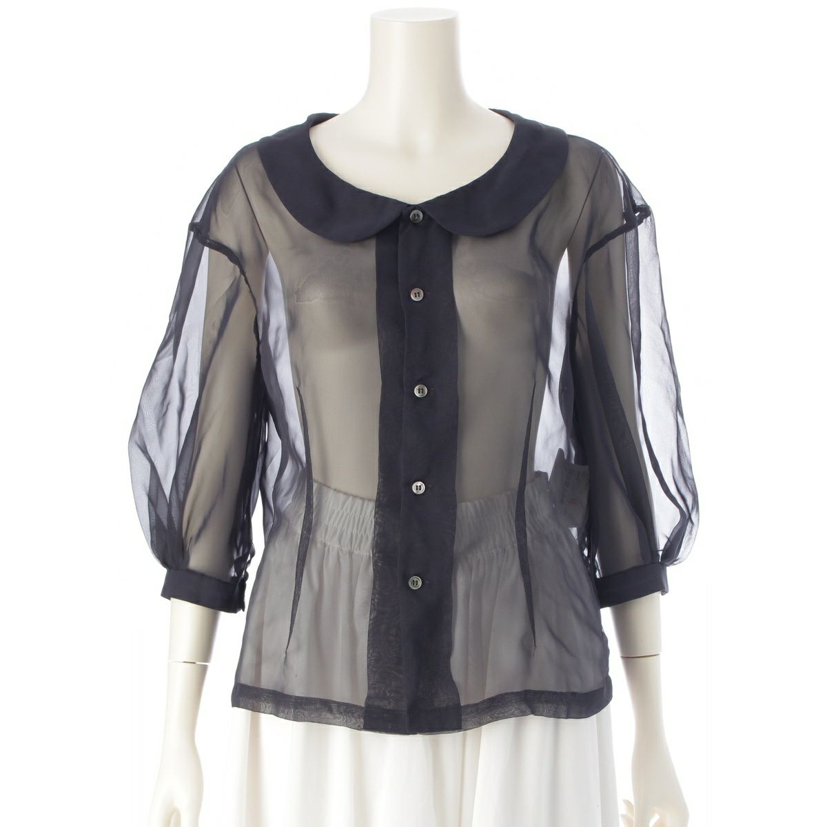 コムデギャルソン AD2019 丸襟 シースルー デザイン ブラウス トップス シャツ RE-B017 ブラック S