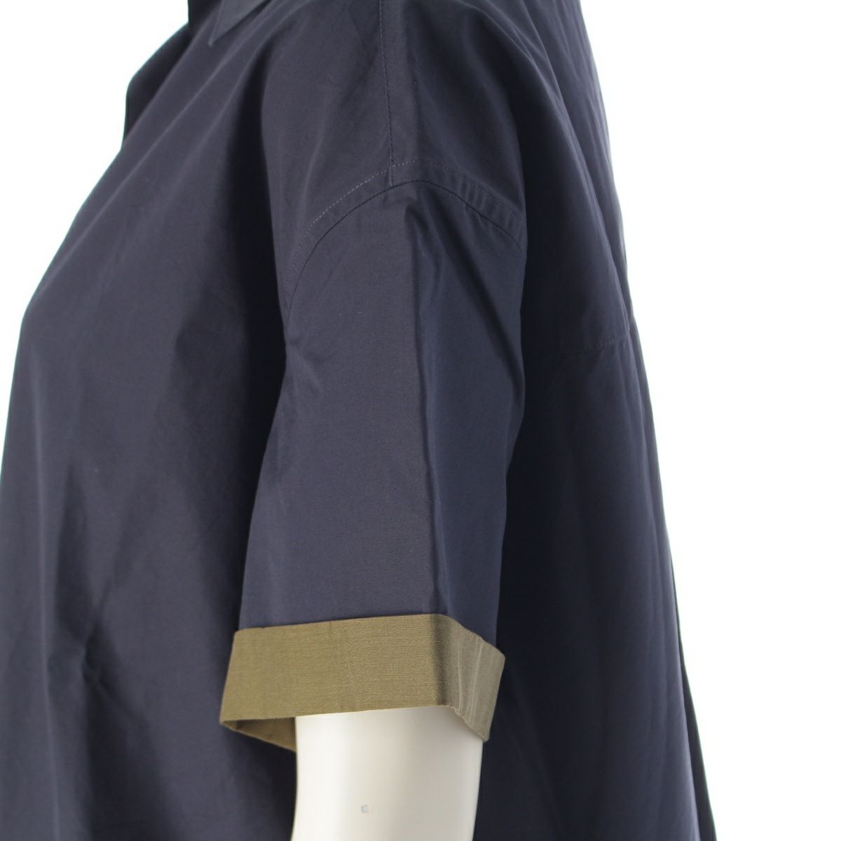 ロエベ コットン アナグラム 刺しゅう ブラウス トップス 半袖シャツ S359Y05XC6 ネイビー カーキグリーン バイカラー 34