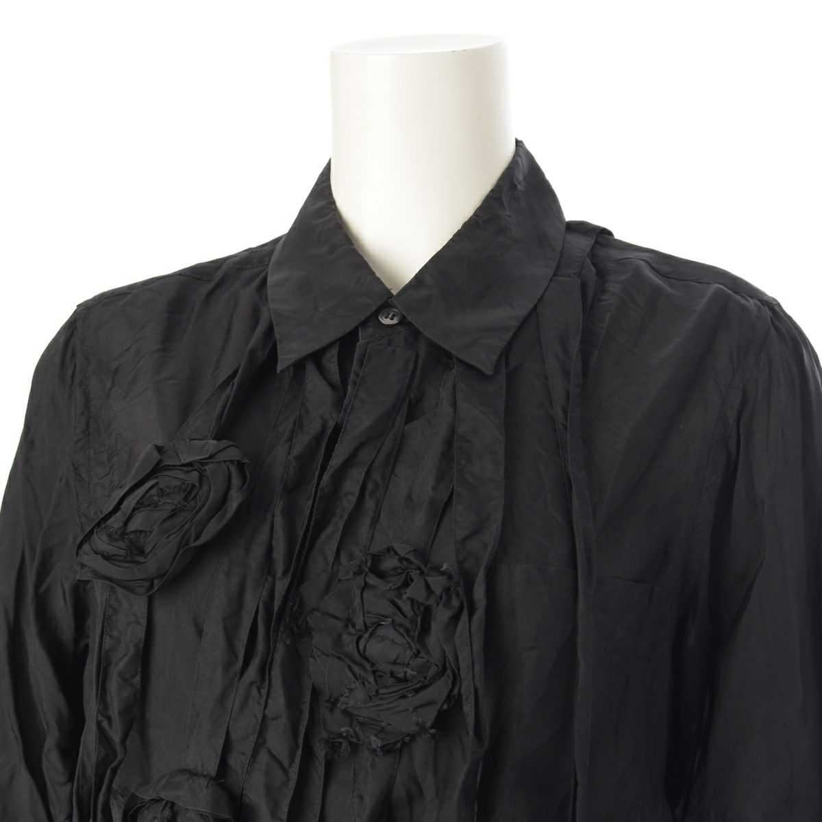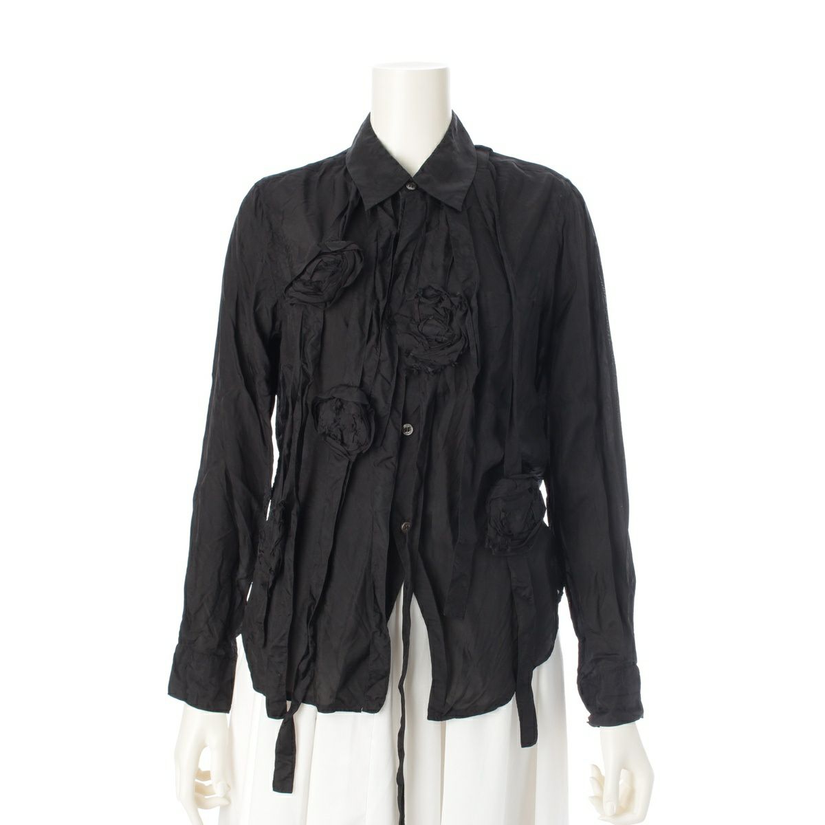 コムデギャルソン AD2014 15SS フラワーモチーフ フリンジ ボウタイ デザイン 長袖シャツ トップス GO-B022 ブラック XS
