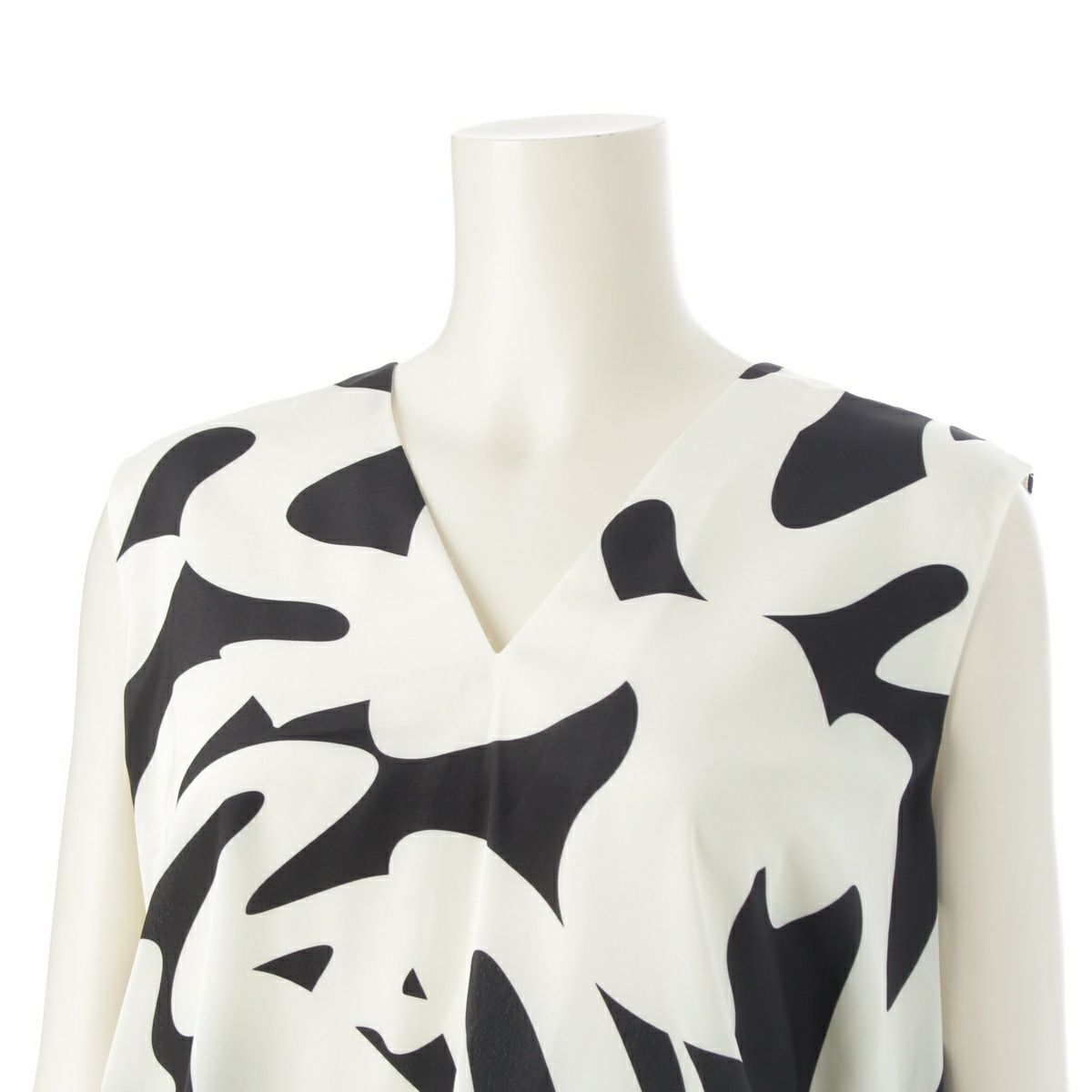 アドーア 24年 ストリーム プリント フレア シルエット ブラウス ノースリーブ トップス 531‐4110510 ブラック ホワイト 38