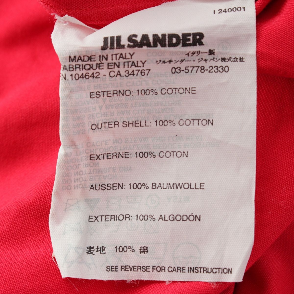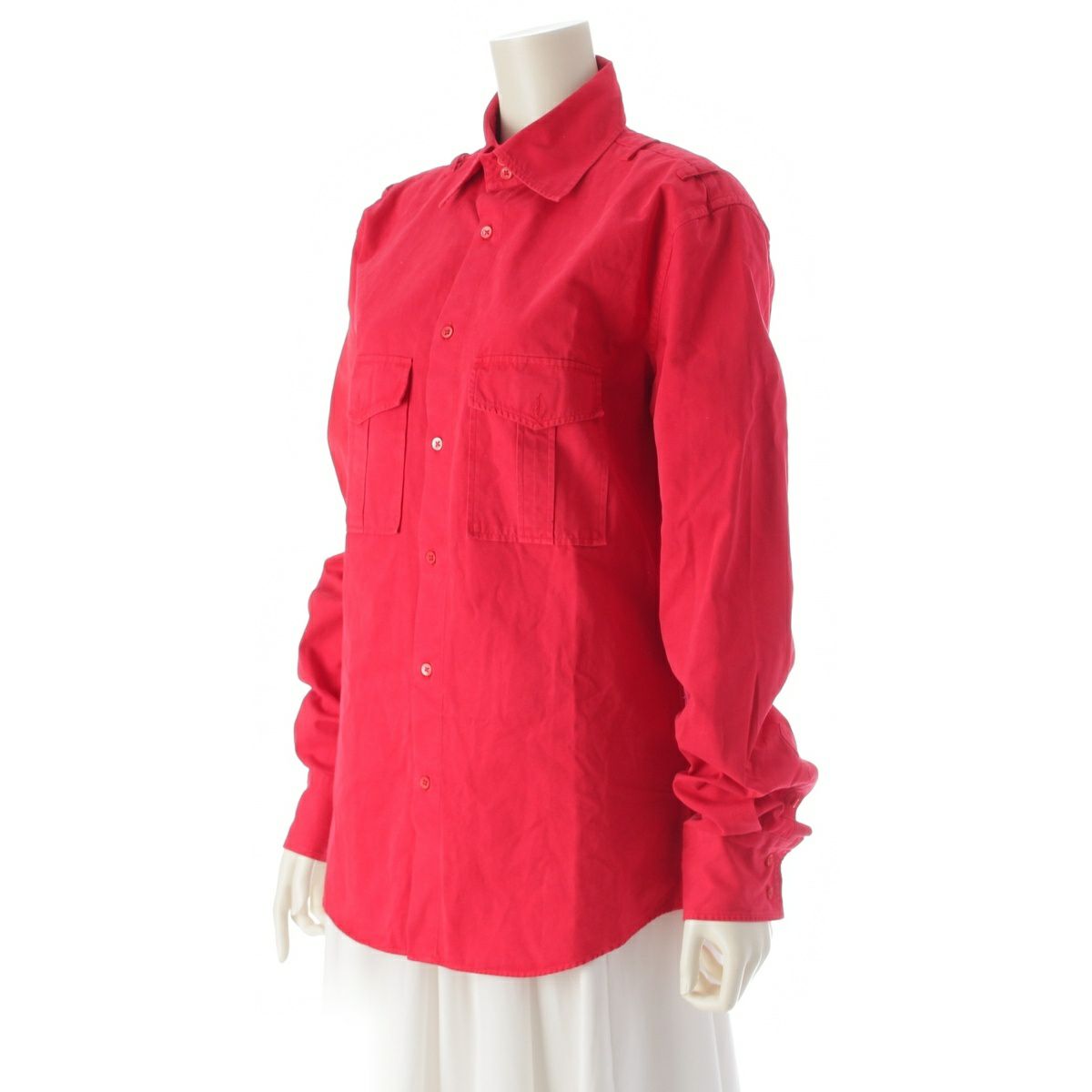 ジルサンダー コットン ラフシモンズ期 エポレットベルト 長袖シャツ レッド 39
