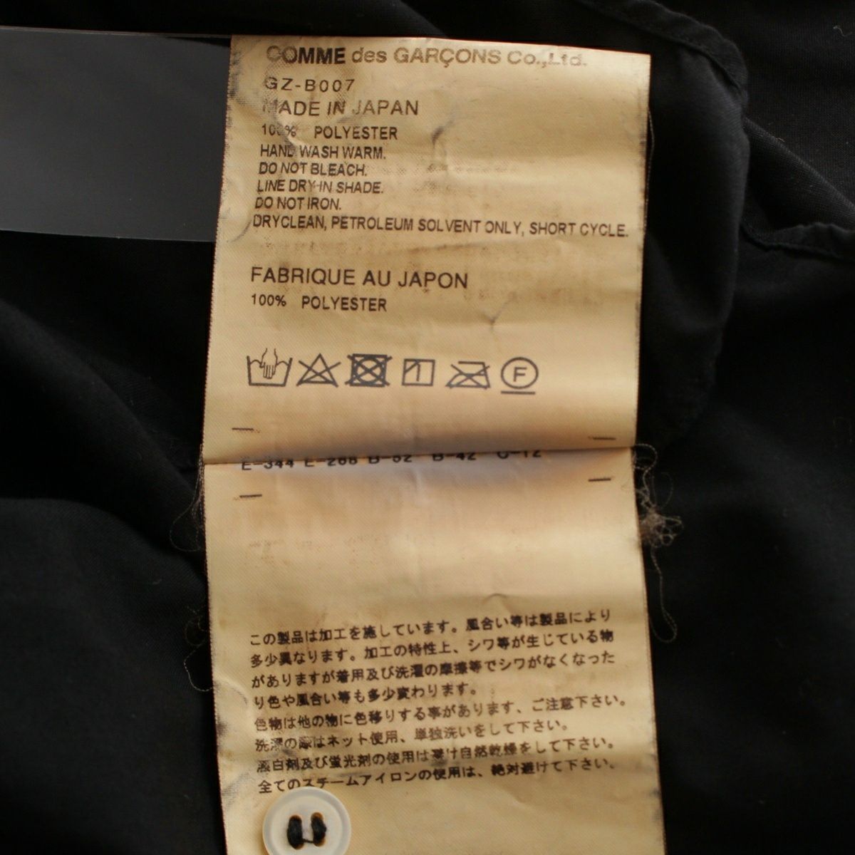 コムデギャルソン AD2021 製品染め レギュラー 長袖シャツ トップス GZ-B007 ブラック XS