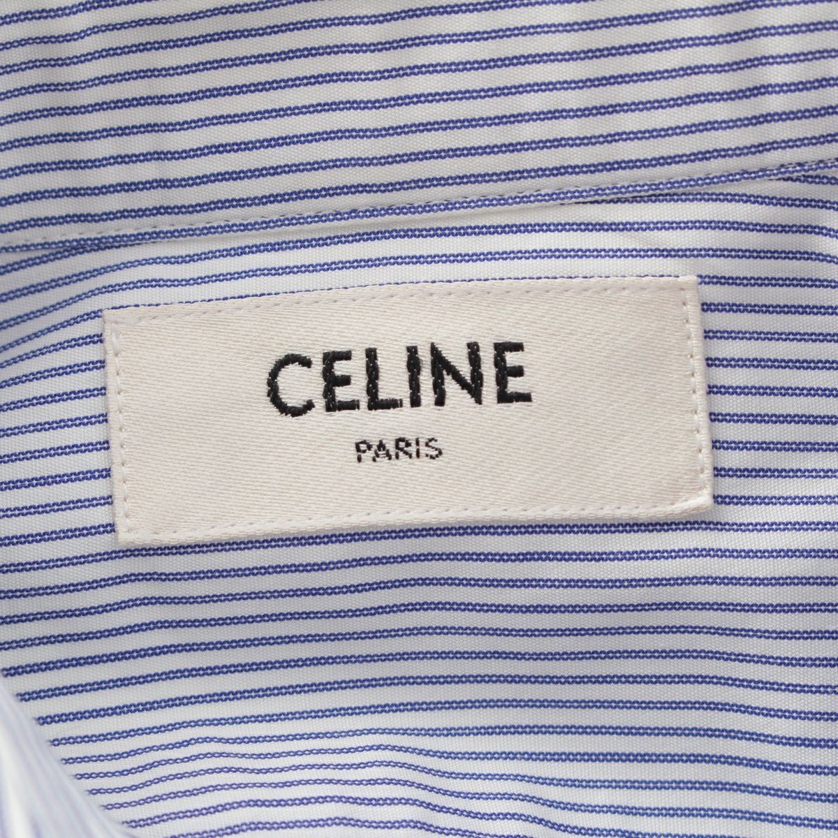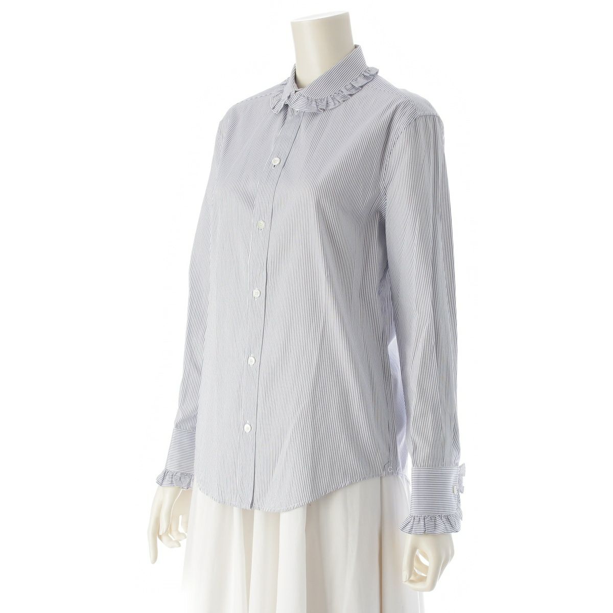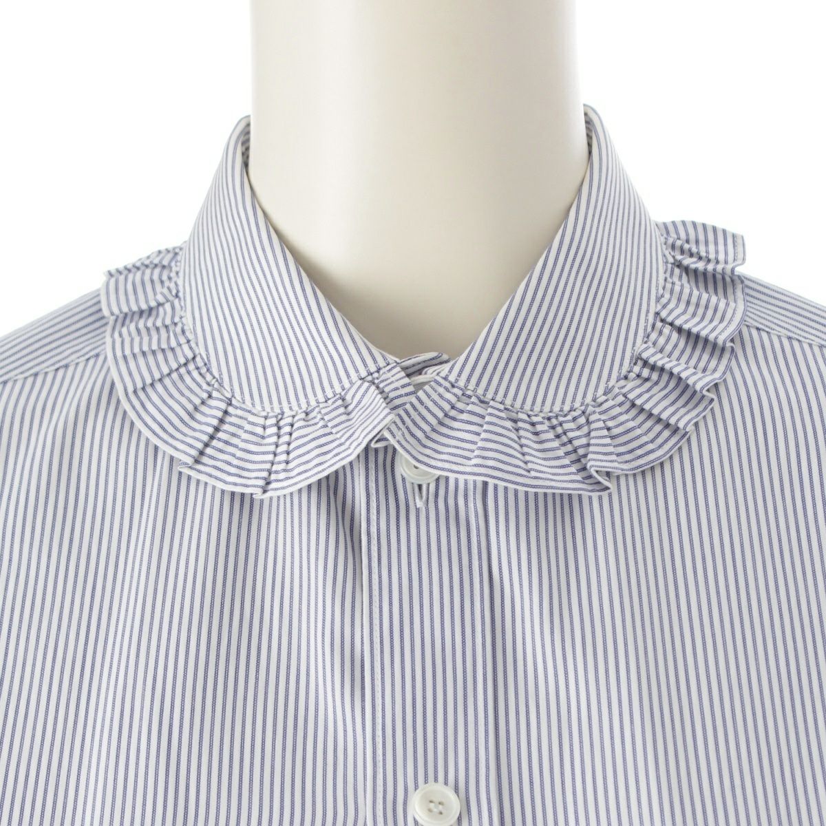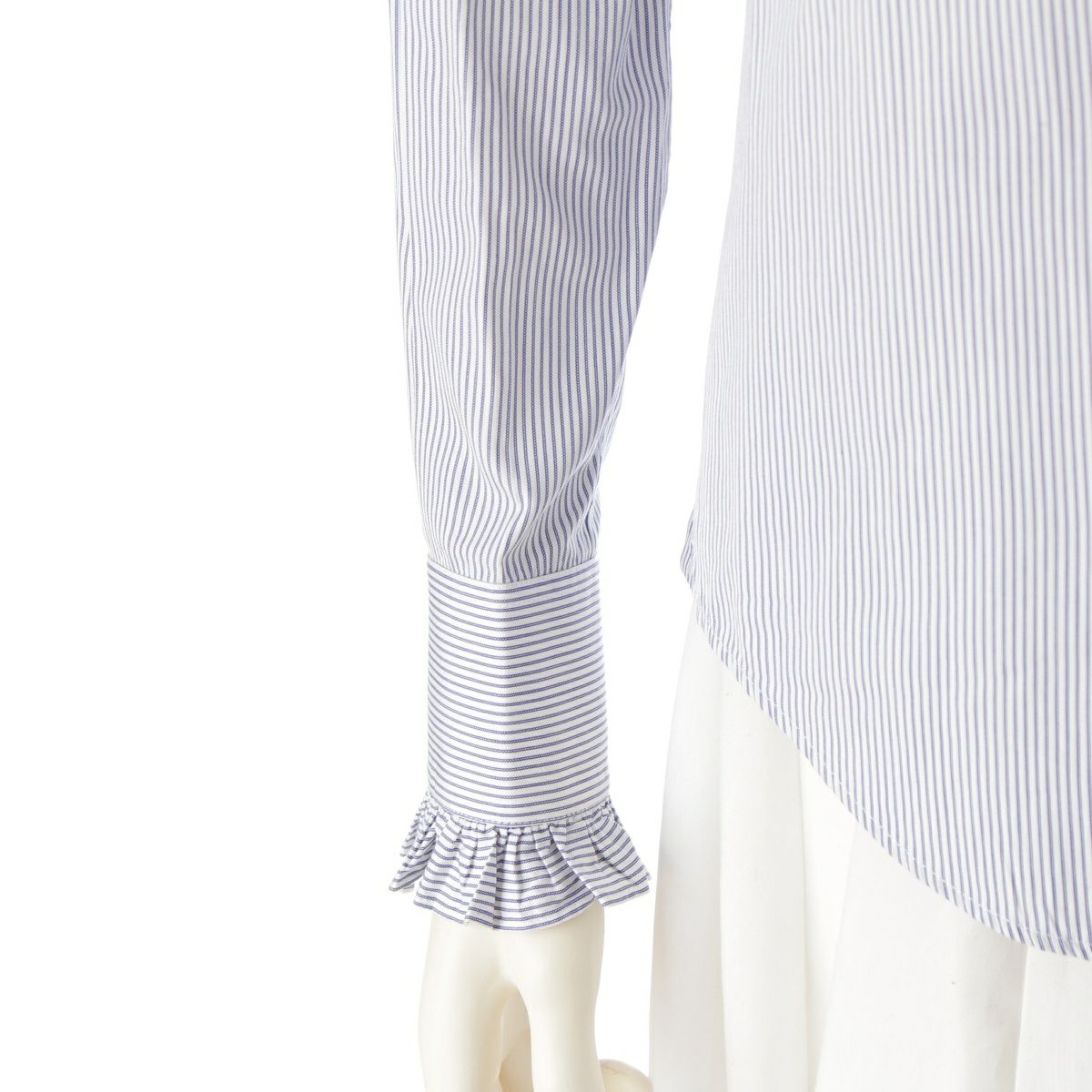 セリーヌ コットン ストライプ フリル ブラウス 長袖シャツ トップス ブルー ホワイト 36