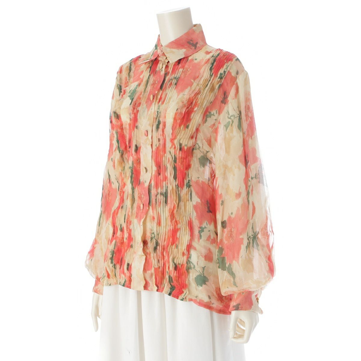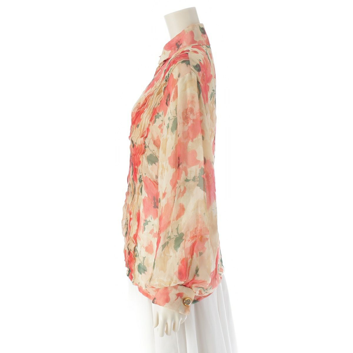 クリスチャンディオール シルク 花柄 長袖 ブラウス トップス 2705220 アイボリー×ピンク 40