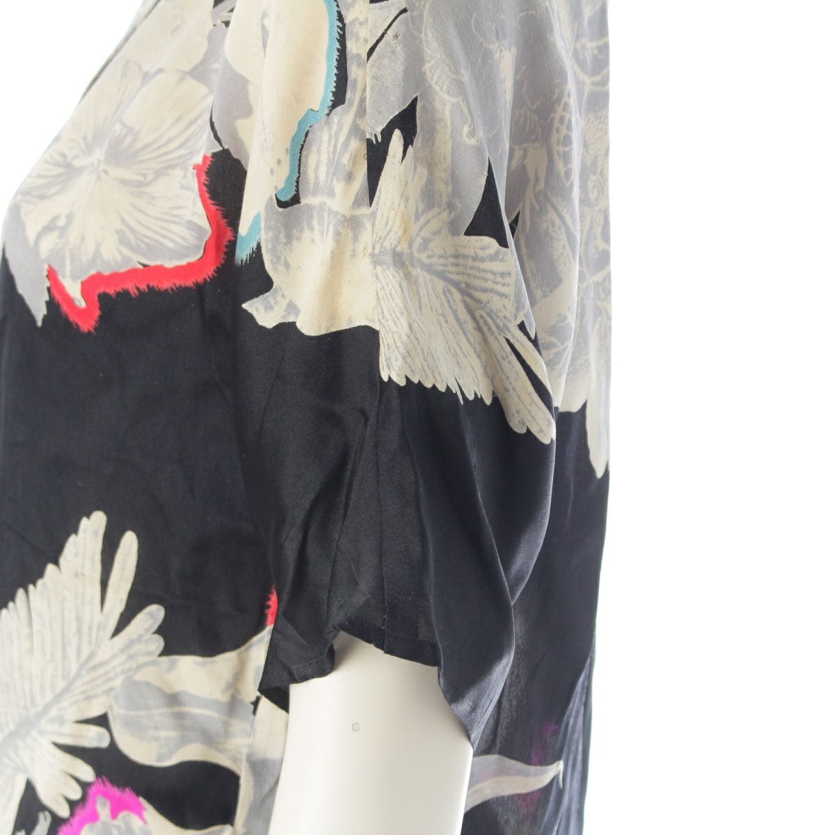 イッセイミヤケ 70s 1979 初期タグ TADANORI YOKOO 横尾忠則グラフィック シルク 花 総柄 半袖シャツ 平面パターン ブラック マルチカラー 9