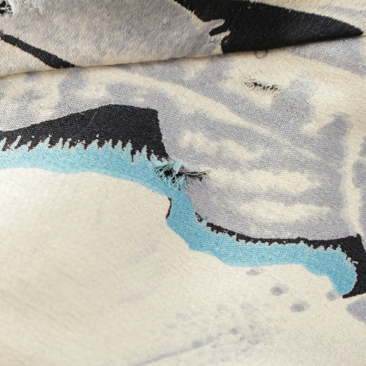 肩に変色/穴あき、ボタン穴に緩み、首、腹部、内側に毛羽立ち、裾、後身頃中央、後身頃下方に糸つれ/糸引き、内側に縫製解れ、腹部、後身頃中央に白い点々、