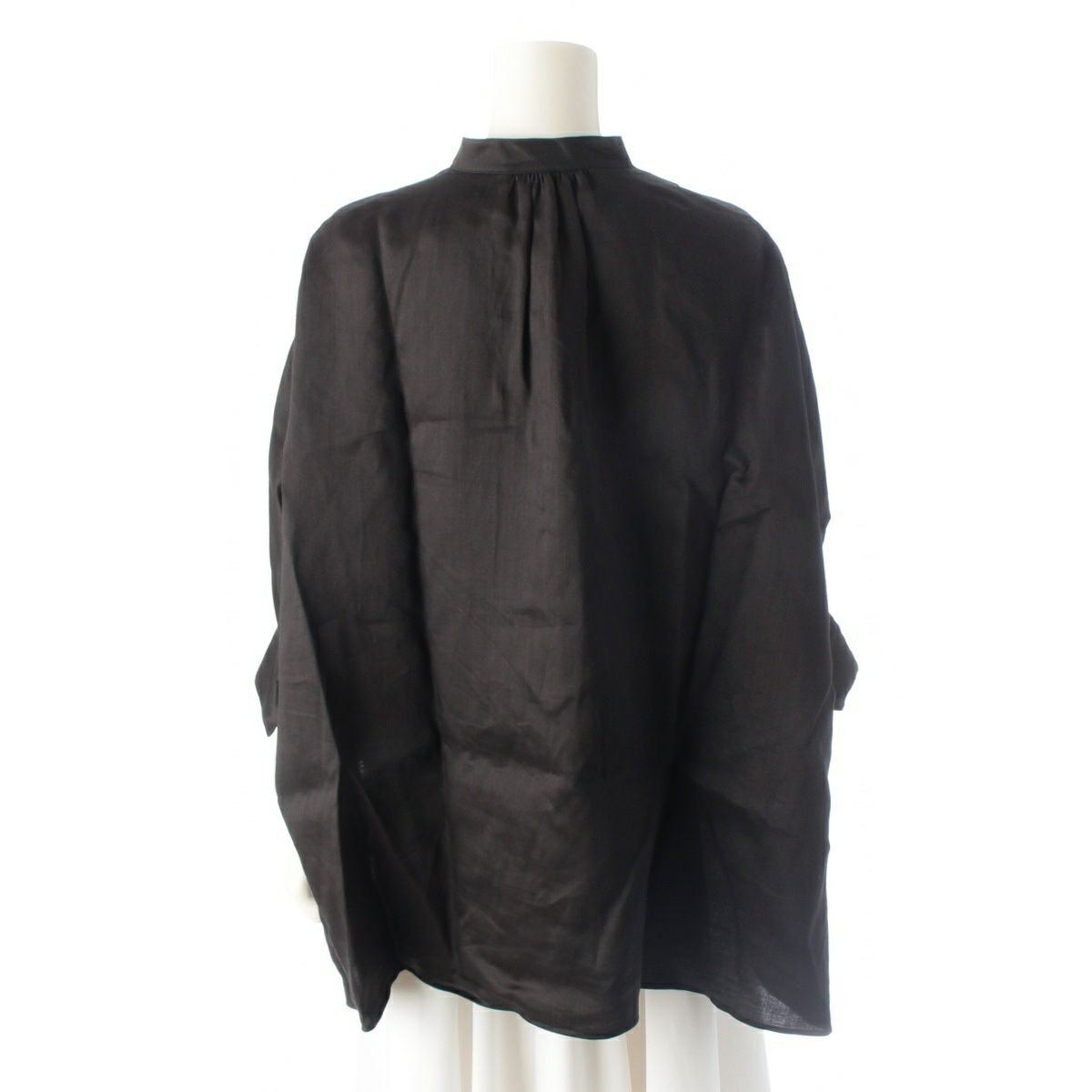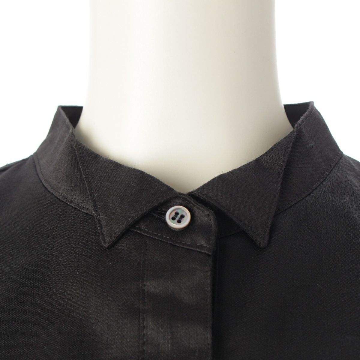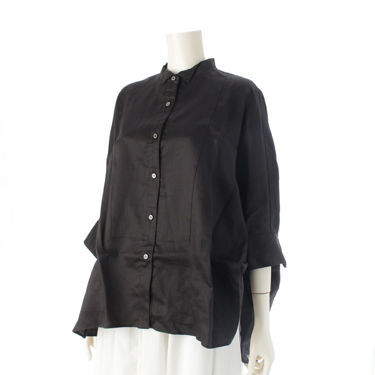 エブール リネン ロゴ刺繍 ラミーサテン ブラウス 4110700537 ブラック 38