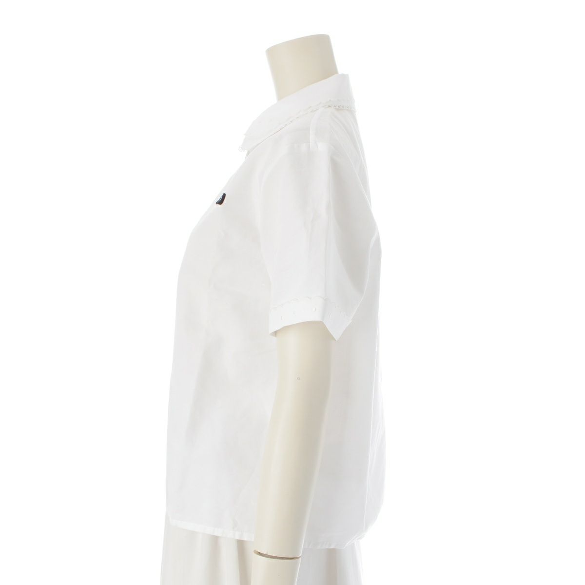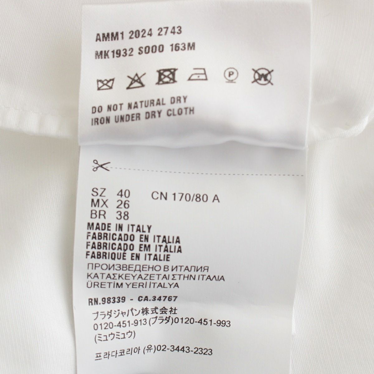ミュウミュウ 24-25年 コットン ロゴ スラブ ポプリン 半袖 ブラウス トップス MK1932 ホワイト 40