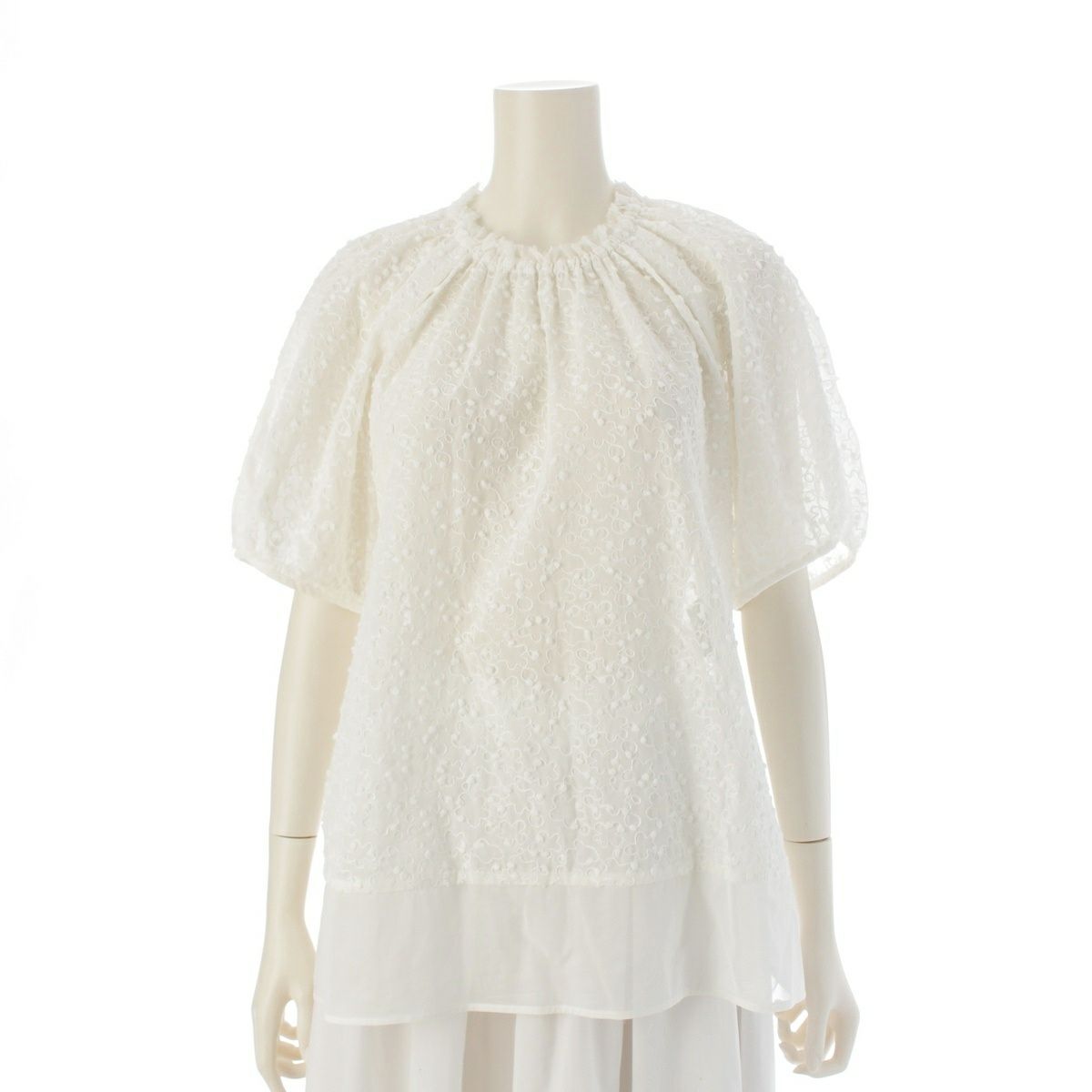 ドゥロワー コットン シアー 刺繍 花柄 ブラウス 6521-299-1319 ホワイト 38