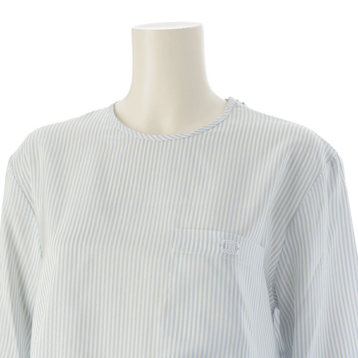 セリーヌ 23年 シルク トリオンフ刺繍 プルオーバー ストライプ ブラウス シャツ トップス 2B775945S ホワイト ブルー 36