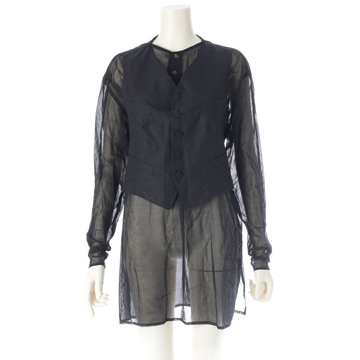 ジャンポールゴルチエ ジャンポールゴルチエ ファム コットン 多重ボタン ベスト レイヤード 変形 ストールドッキング プルオーバー シャツ ブラウス ブラック 40