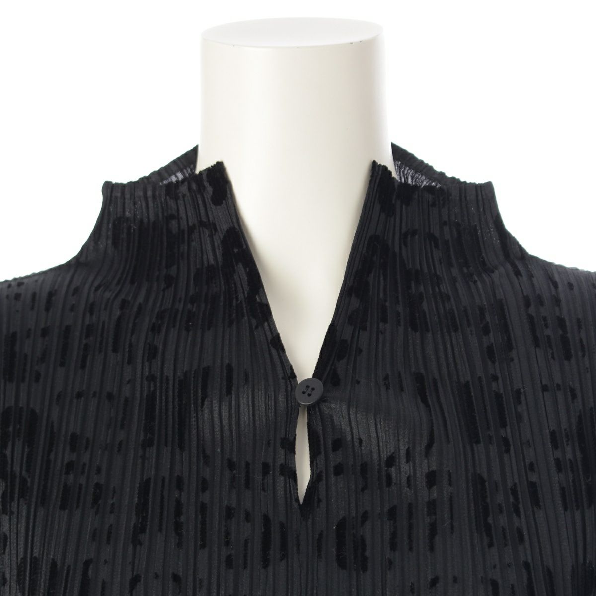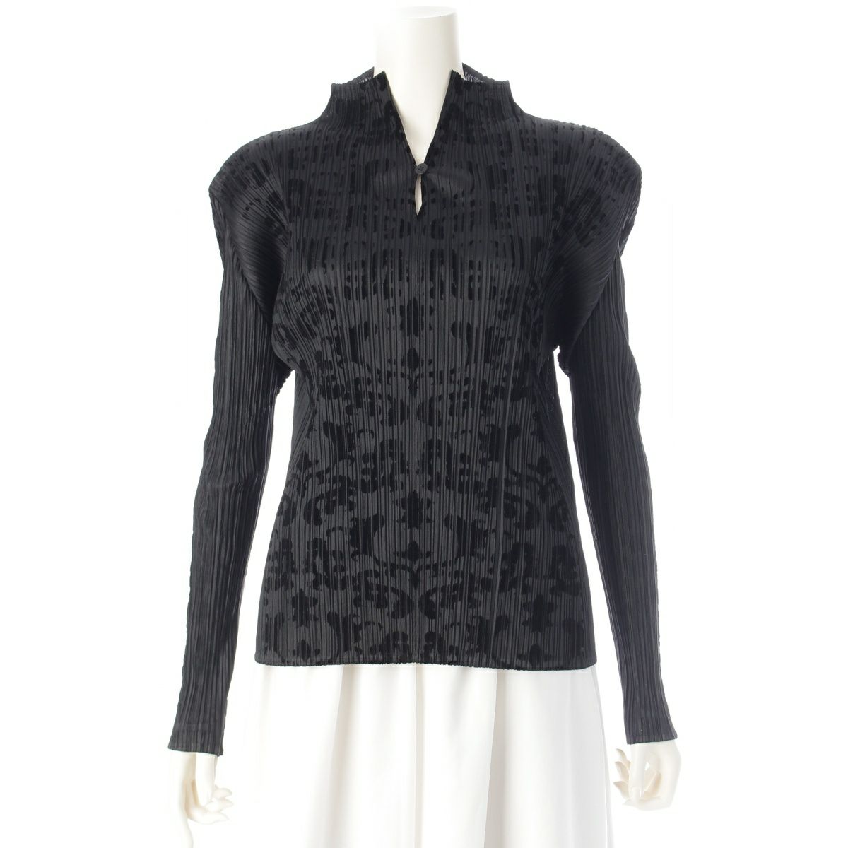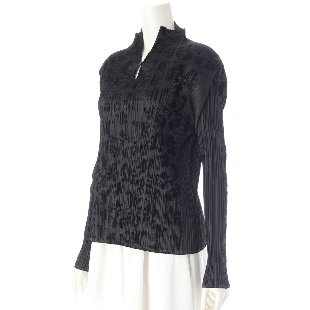イッセイミヤケ ベロア 転写加工 ダマスク プルオーバー スキッパー 長袖シャツ トップス ブラック 4