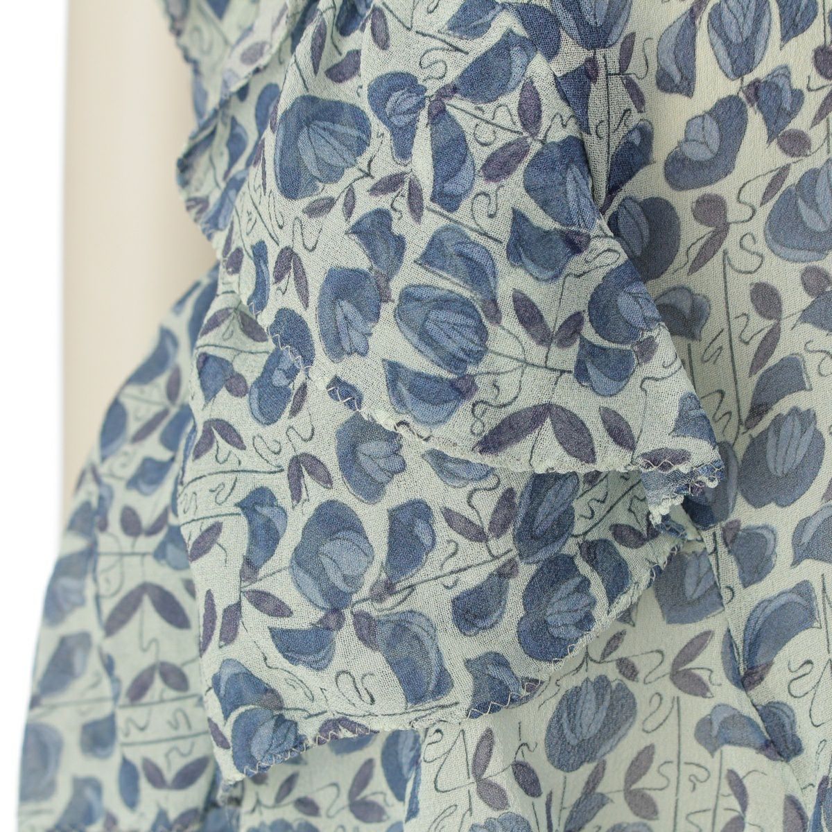 ドゥロワー 21SS シルク フラワープリント ノースリーブ ブラウス トップス 6521-299-0887 ブルー 38