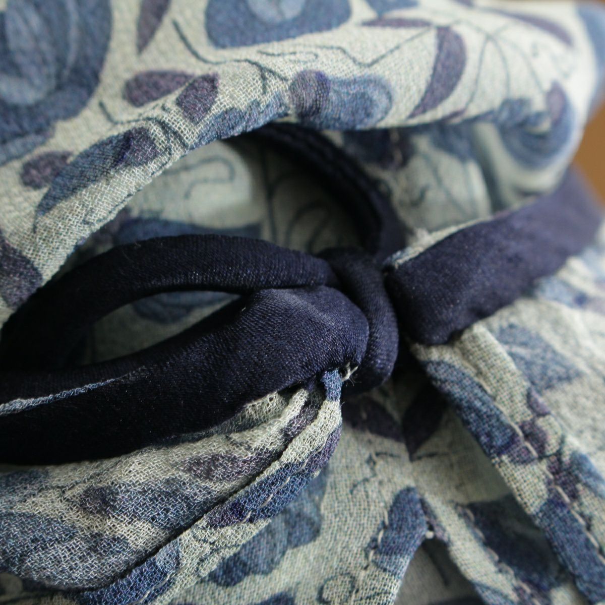 ダメージ箇所: リボン、首元裏地、脇裏地等に汚れ、背面裾元に糸つれ、