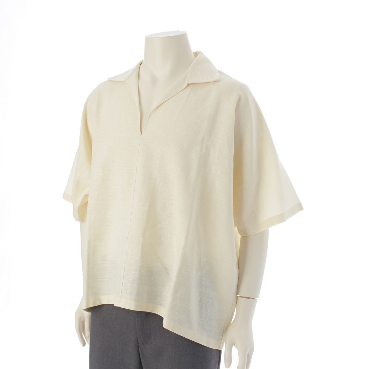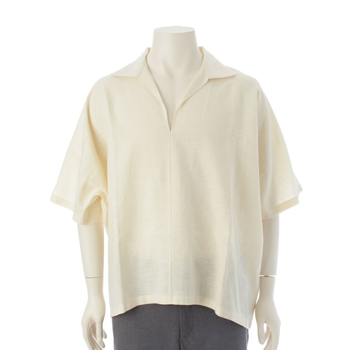 ザロウ ウール シルク リネン Wen Top スキッパーシャツ ブラウス 8169-W3040 オフホワイト XS