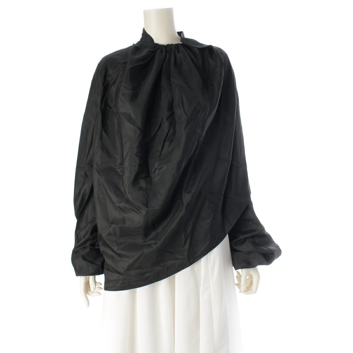 イッセイミヤケ 80s 1987 筆タグ シルク ナイロン 変形 プルオーバー ブラウス 長袖 トップス JG12537 ブラック M