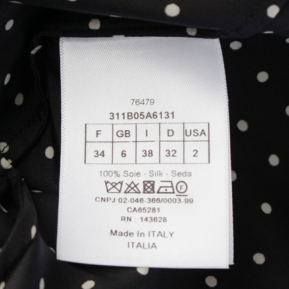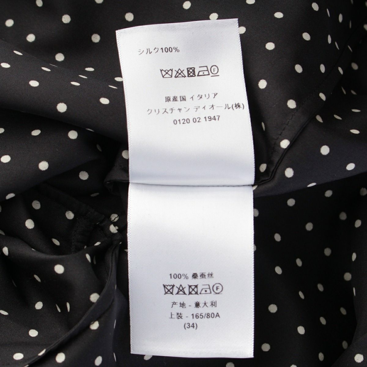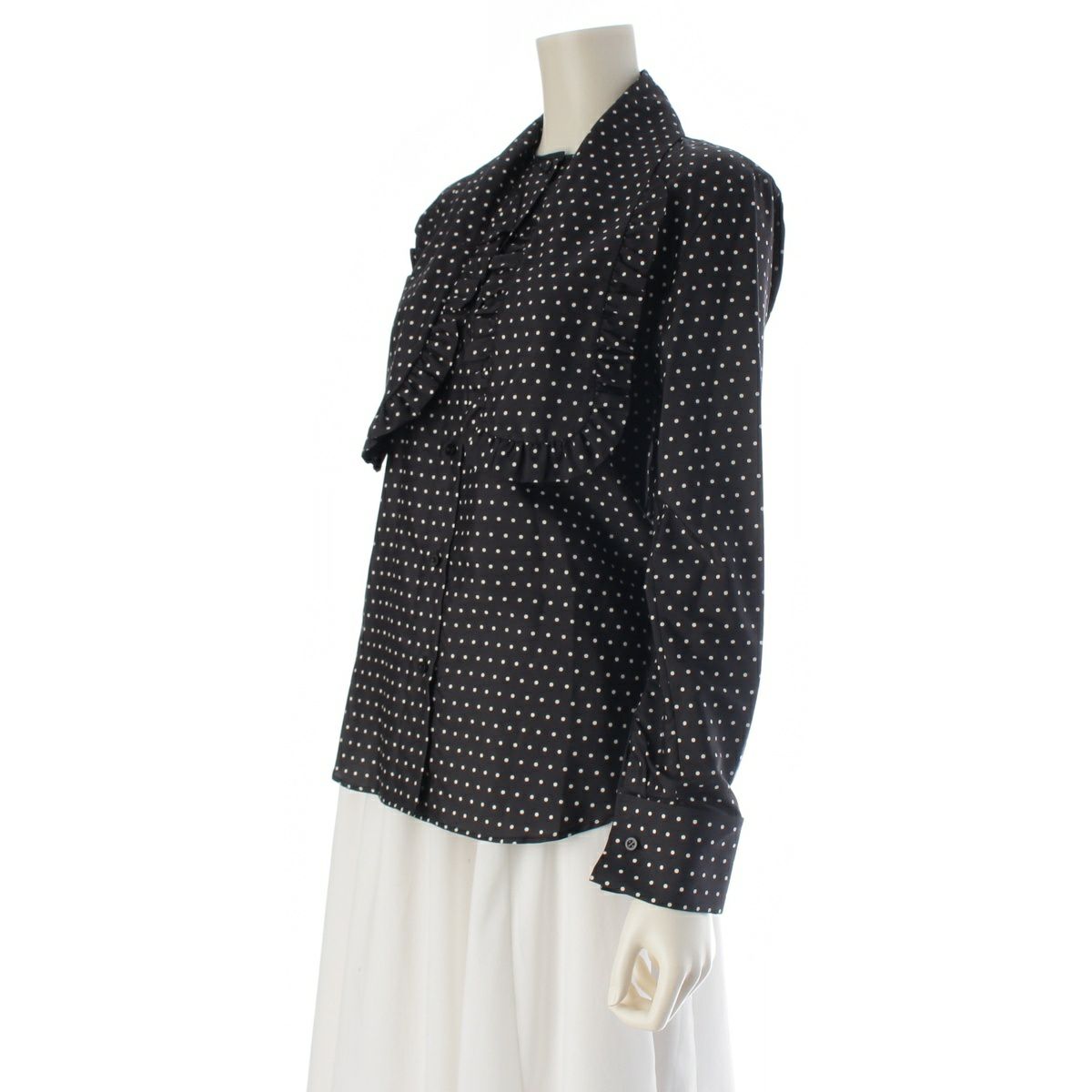 ディオール 23年 シルク アスコット ドット柄 ブラウス 311B05A6131 ブラック 38