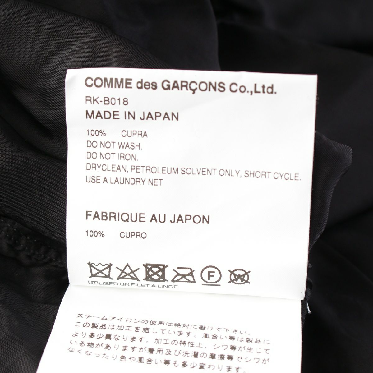 コムデギャルソン コムデギャルソン AD2022 23SS キュプラ 襟 ギャザー キュプラ 長袖シャツ RK-B018 ブラック