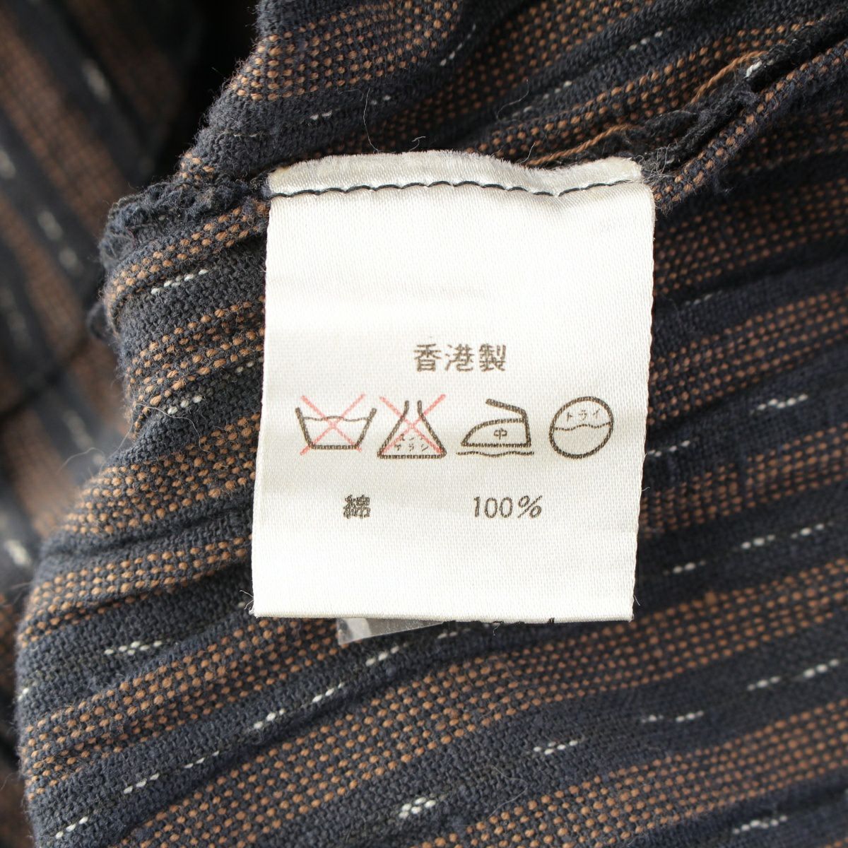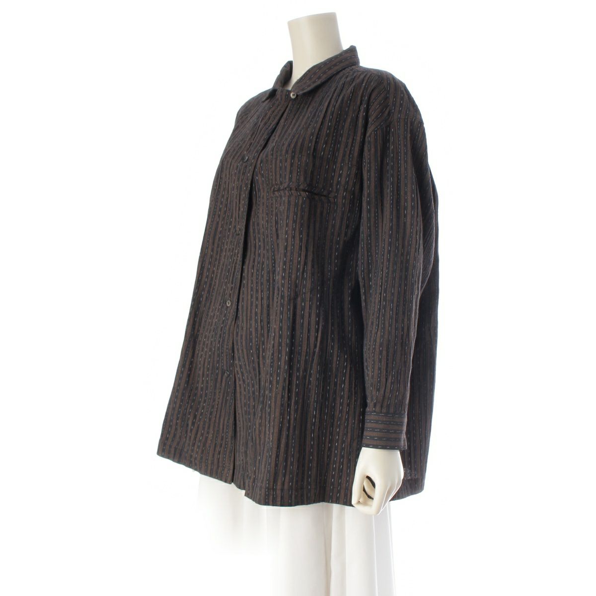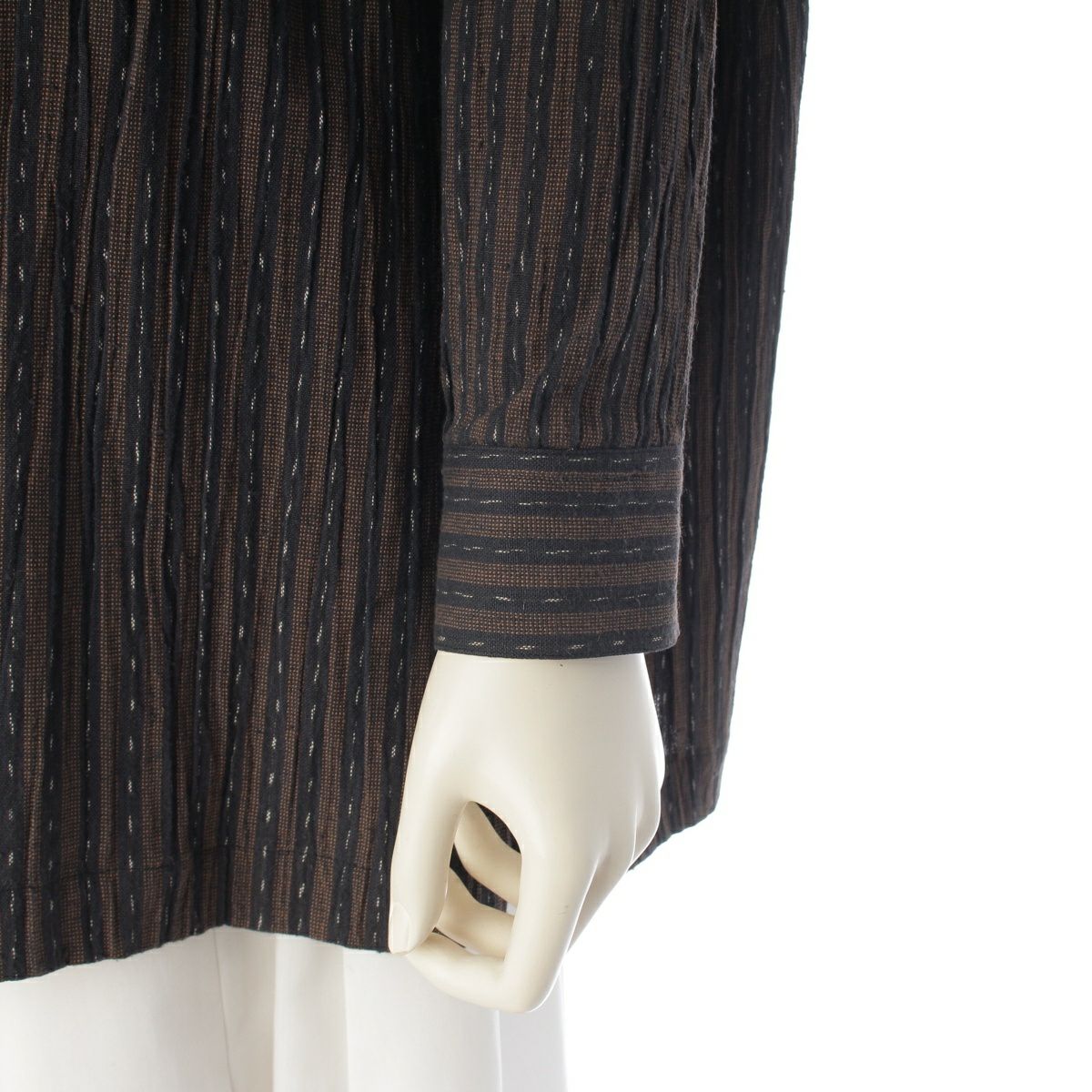 イッセイミヤケ 80s 1984 コットン 筆タグ 絣 ストライプ 両玉縁ポケット 変形 ジャケット 長袖シャツ ブラウン ネイビー 9