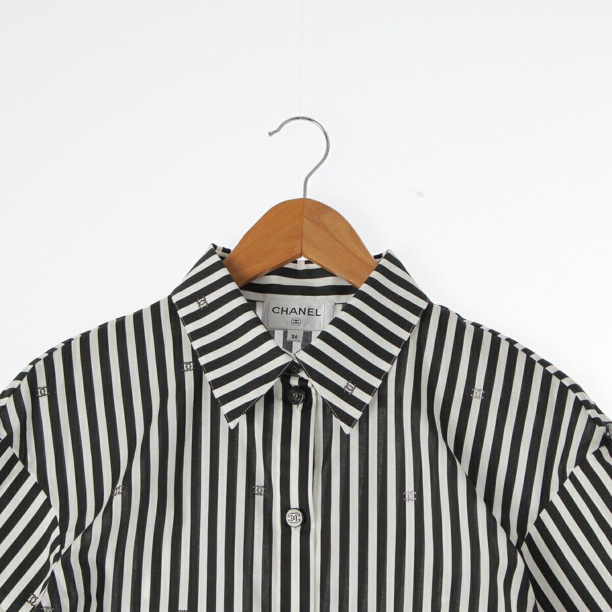 シャネル 24年 ココマーク ストレッチ ポプリン ブラウス P76220 ブラック×ホワイト 36【中古】【正規品保証】