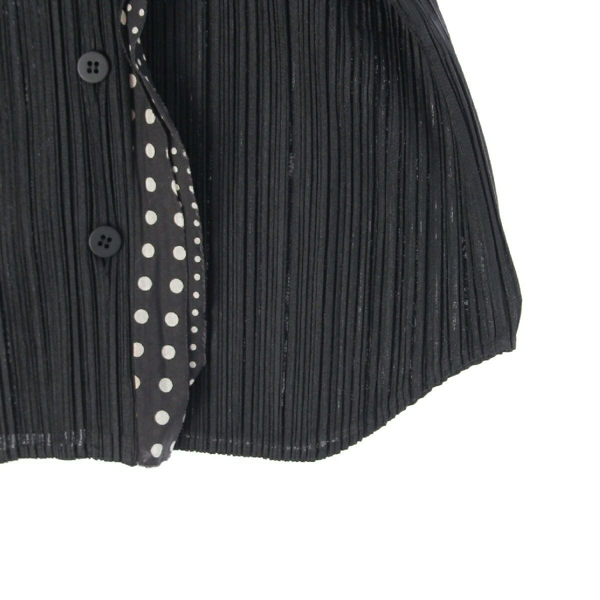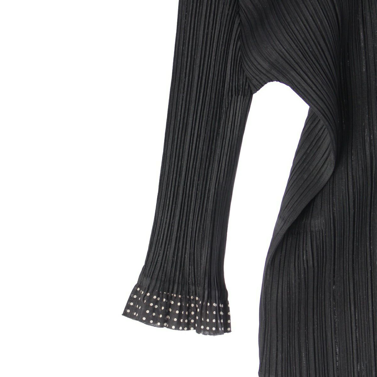 プリーツプリーズ イッセイミヤケ ドット フリル ロングスリーブ シャツ ブラウス トップス PP43-JJ672 ブラック 3【中古】【正規品保証】