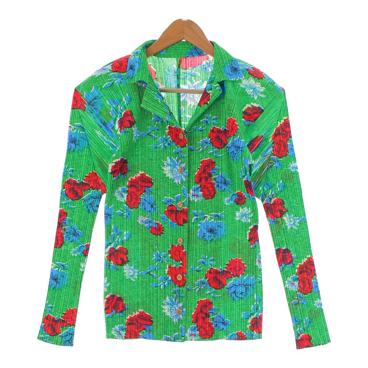 プリーツプリーズ イッセイミヤケ ポリエステル 花柄 総柄 長袖シャツ PP72-JK524 グリーン系マルチカラー 3