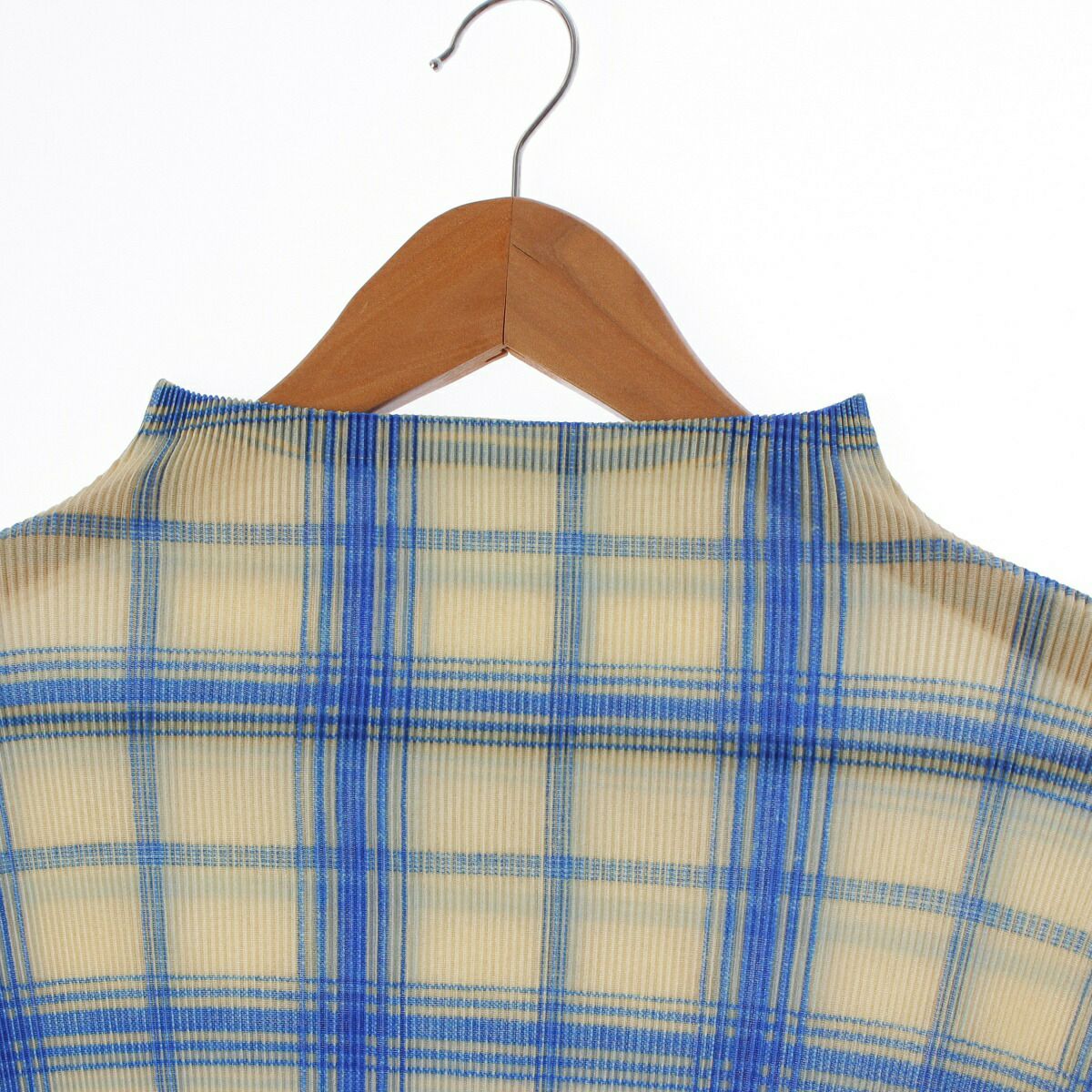 プリーツプリーズ イッセイミヤケ ボトルネック チェック柄 七分丈 半袖シャツ トップス カットソー PP91FK313 ベージュ ブルー 3