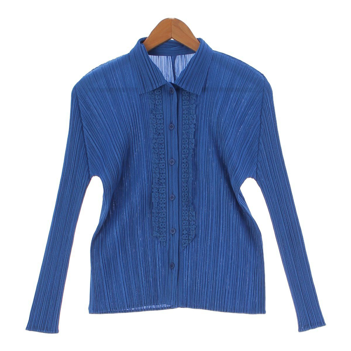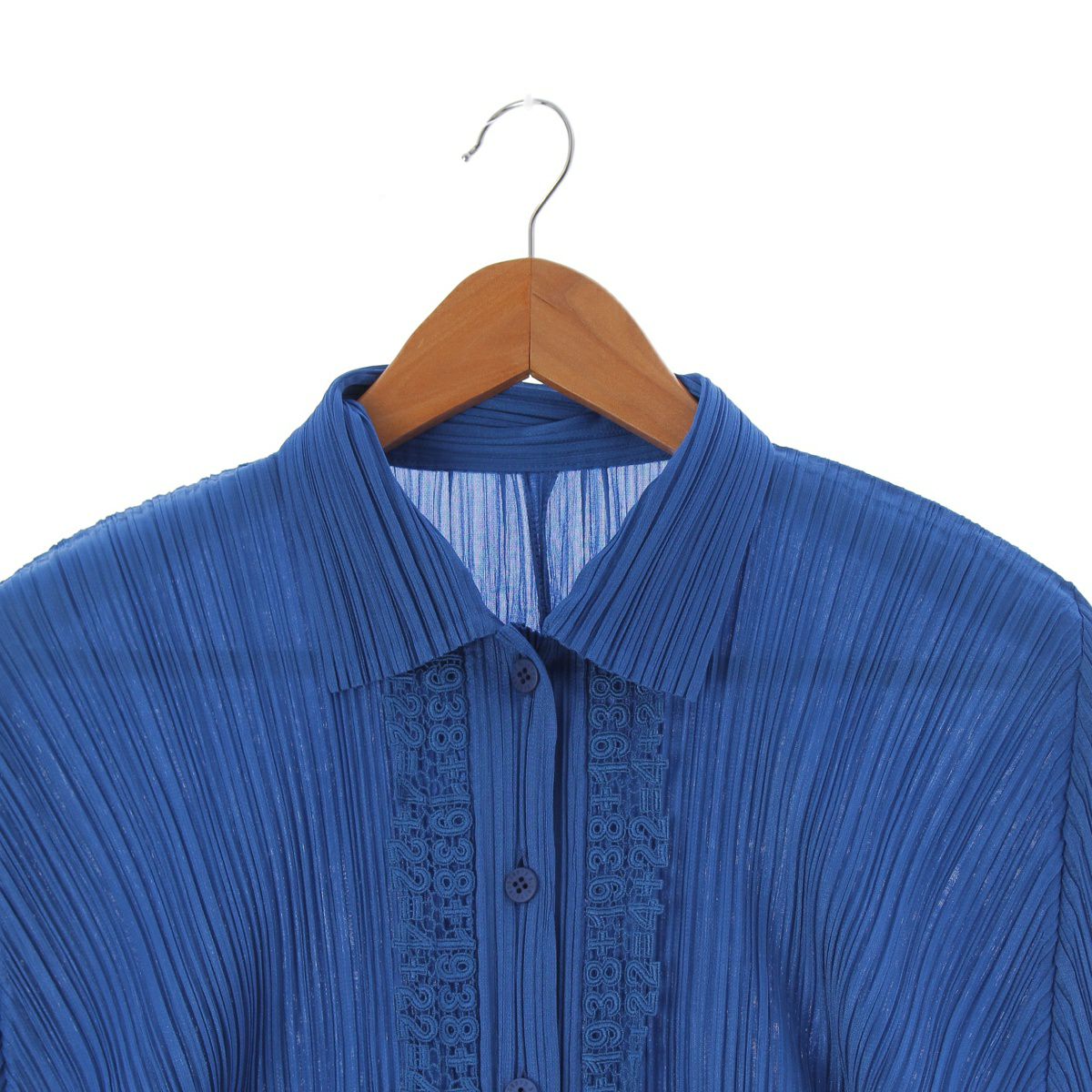 プリーツプリーズ イッセイミヤケ 1938 襟つき 長袖シャツ トップス ブラウス PP81‐JJ773 ブルー 3