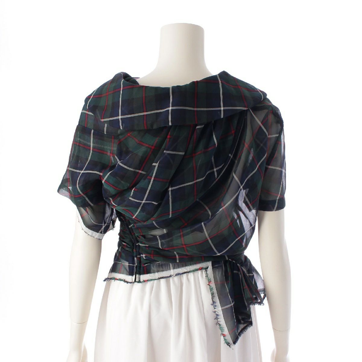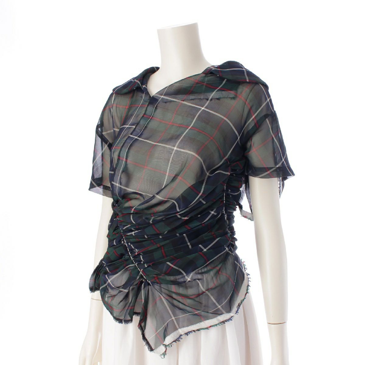 コムデギャルソン 05AW チェック柄 丸襟 シャーリングデザイン 変形 ブラウス トップス GQ-B017 グリーン S