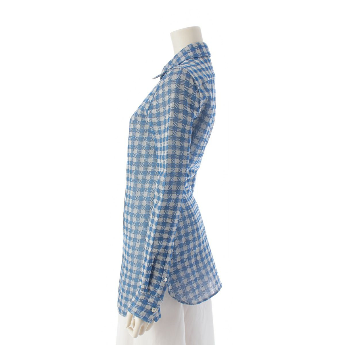 セリーヌ シルク フィービー期 チェック柄 ブラウス シャツ トップス 2 0X64 ブルー×グレー 34