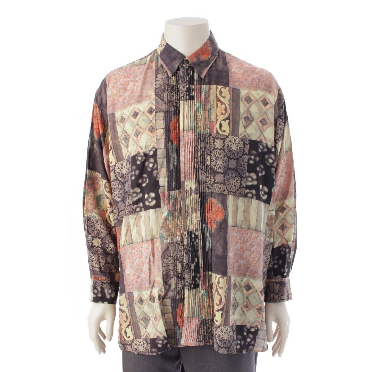 イッセイミヤケ メン レーヨン 総柄 パッチワークプリント プリーツ加工 長袖シャツ ME63-FJ293 マルチカラー S